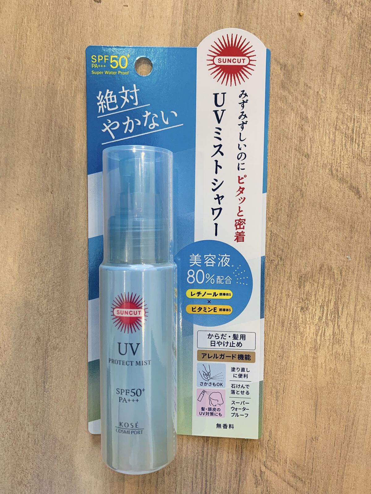 - 1.瞬間さらピタッ! べたつきにくいUVミストシャワー 2.美容液※1 80%配合 UVダメージをケア レチノール誘導体※2・ビタミンE誘導体※3・ローズマリーエキス・スクワラン(保湿)配合 無香料・無着色・パラベンフリー 3.アレルガード機能※4 花粉などをブロック ※1 UVカット成分を除く ※2 パルミチン酸レチノール ※3 酢酸トコフェロール ※4 花粉・ちり・ほこり・PM2.5などをブロックする機能