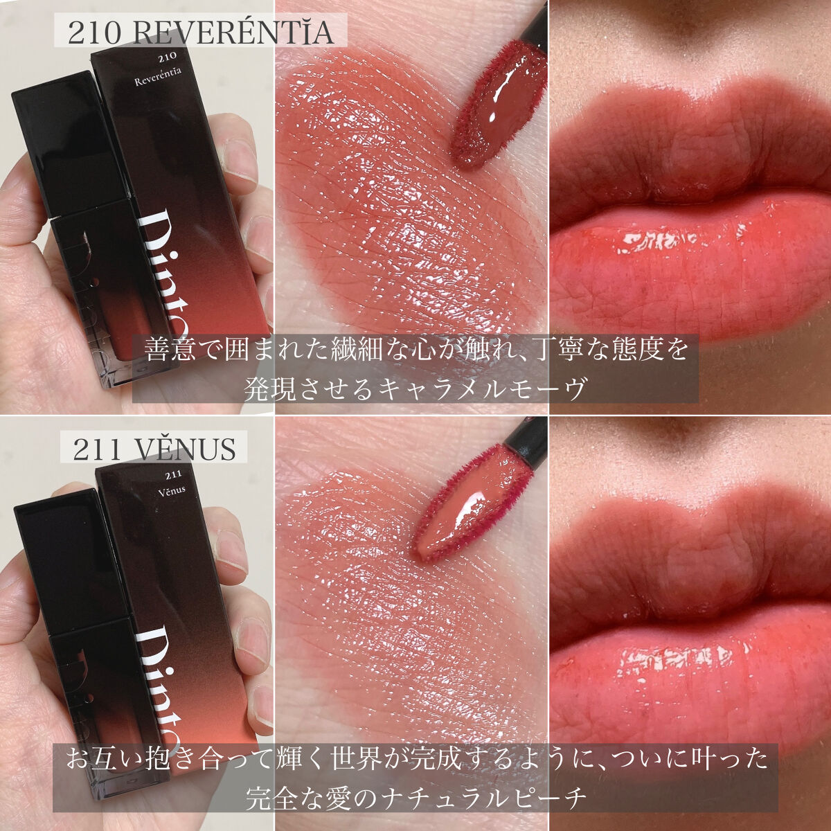 ガラス玉のようなツヤでちゅるんと感が◎ ティント特有の蛍光っぽく落ちるというのがなかったように感じてそこも嬉しいポイント💓 いちごっぽいフルーティーな香りがするので苦手な方は気をつけたほうがいいかも😣 古代ローマ皇帝で哲学者であるマルクス•アウレリウスが執筆した「自省録」からインスパイアされた全12色展開 203や204はブルベ向け、201や212はイエベ向けのカラーですが唇に付けてみるとブルベカラーでも違和感なかった💡