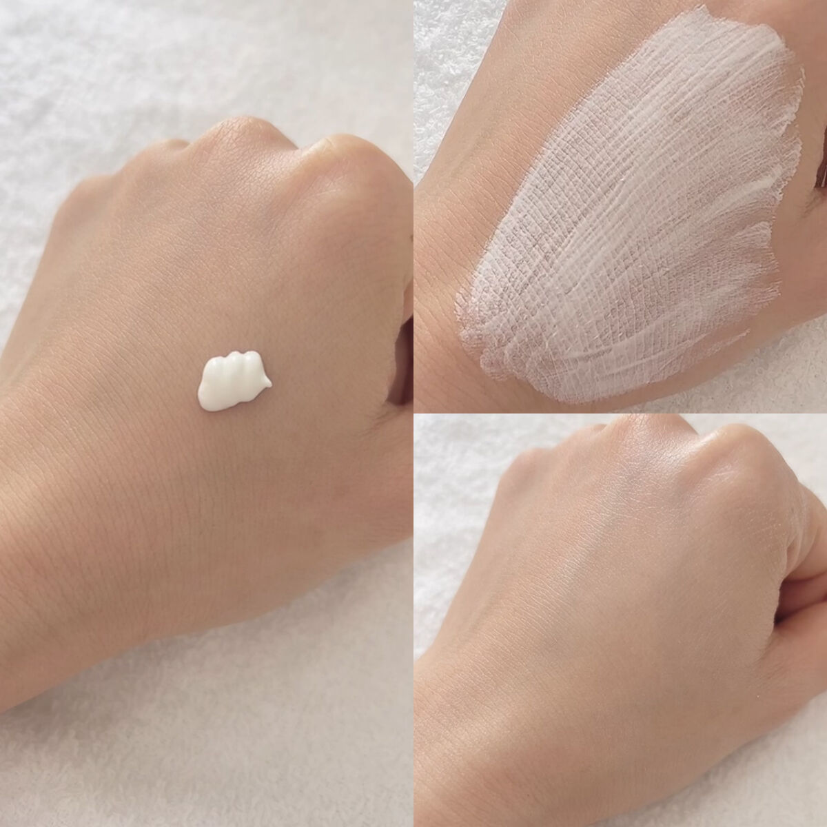 みずみずしい感じで、とっても伸びがよいので するするとつけられます! 肌の補正効果も高く、肌を綺麗に見せてくれ、 トーンアップしてくれます! めちゃくちゃカバー力があるので、 肌の調子がいい時は、上からコンシーラーで少し 赤みやクマを隠して、その上からパウダーで ベースメイク完了します! 紫外線カット効果もあり、 SPF50+ PA++++ なので日焼け止めとしても 使えるのが嬉しいポイントです! 皮脂崩れ、汗に強いので、 マスクしてても私は崩れは そんなに気にならないです! カバー力も欲しいけど、日焼け止めとしても 使いたい時に抜群で、年中使える下地です!