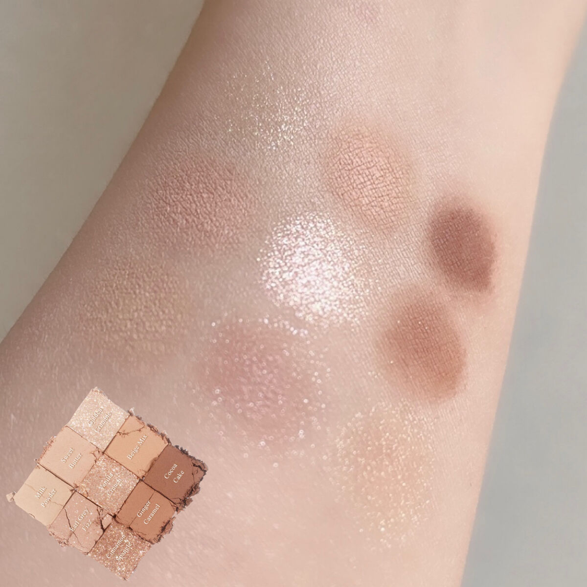 韓国コスメブランド『keybo(キボ)』から発売されてるFALL IN LOVE SHADOW PALETTEの新色パレットがとても可愛いセミスモーキーカラーで日常使いにもおすすめなお洒落なパレット❣️ 新色『05 Night out』はくすみ感あるベージュカラーとブラウンカラーに血色感あるカラーで配色された9色パレットで、ナチュラルなくすみ感と自然な陰影を作る事ができて、デイリーメイクにはもちろん大人っぽく仕上げたりとメイクの幅が広がるパレットになっています✨ ナチュラルなスモーキーカラーだけれど左上のグリッターを添えることで目元を華やかにみせてくれます💓