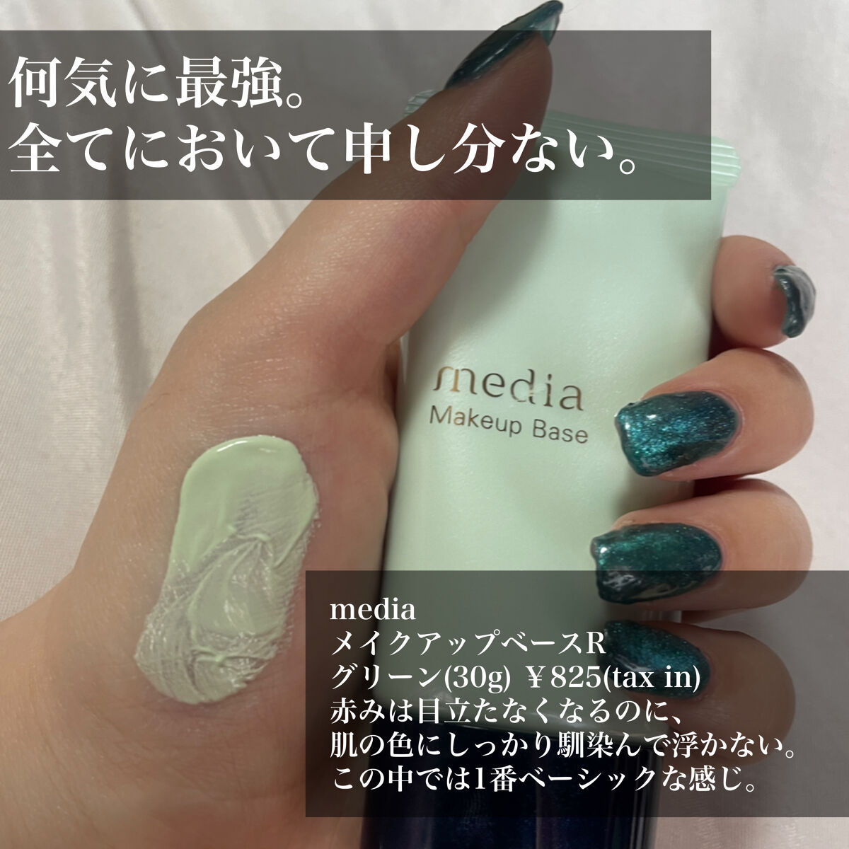 カバー力が侮れない! mediaのメイクアップベースR グリーンを紹介します🍀 これが思っていた何倍もいい!!こんなに肌に馴染むとは…!! 私と同じ、赤みやくすみの肌悩みを持つ方におすすめの下地です☺️