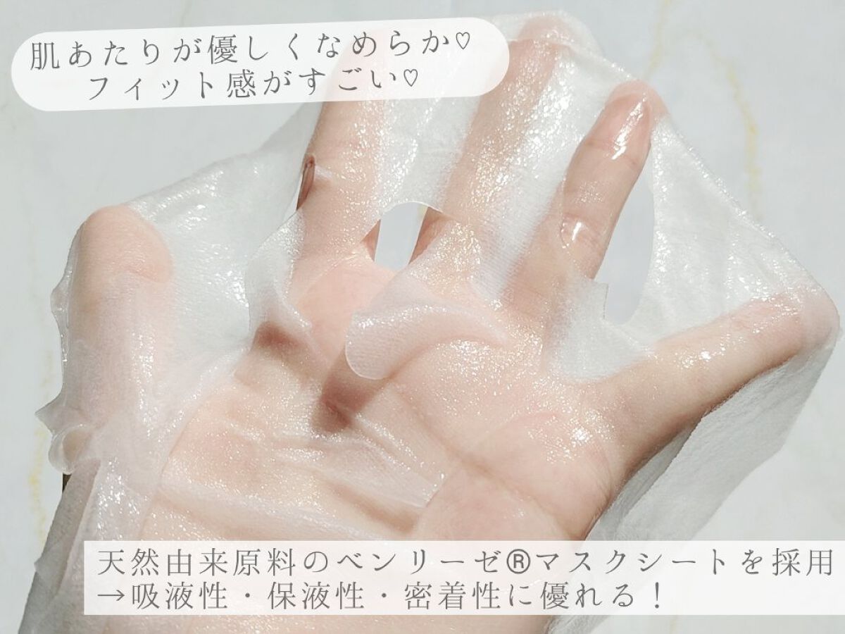 | スキンケアランキング第60位 | 袋を開けた瞬間から美容液がたっぷりで贅沢感 シートは薄めなのに破れにくく、顔全体にピタッと密着。液だれしにくいのでながらケアにも◎ | 詳細を見る | |