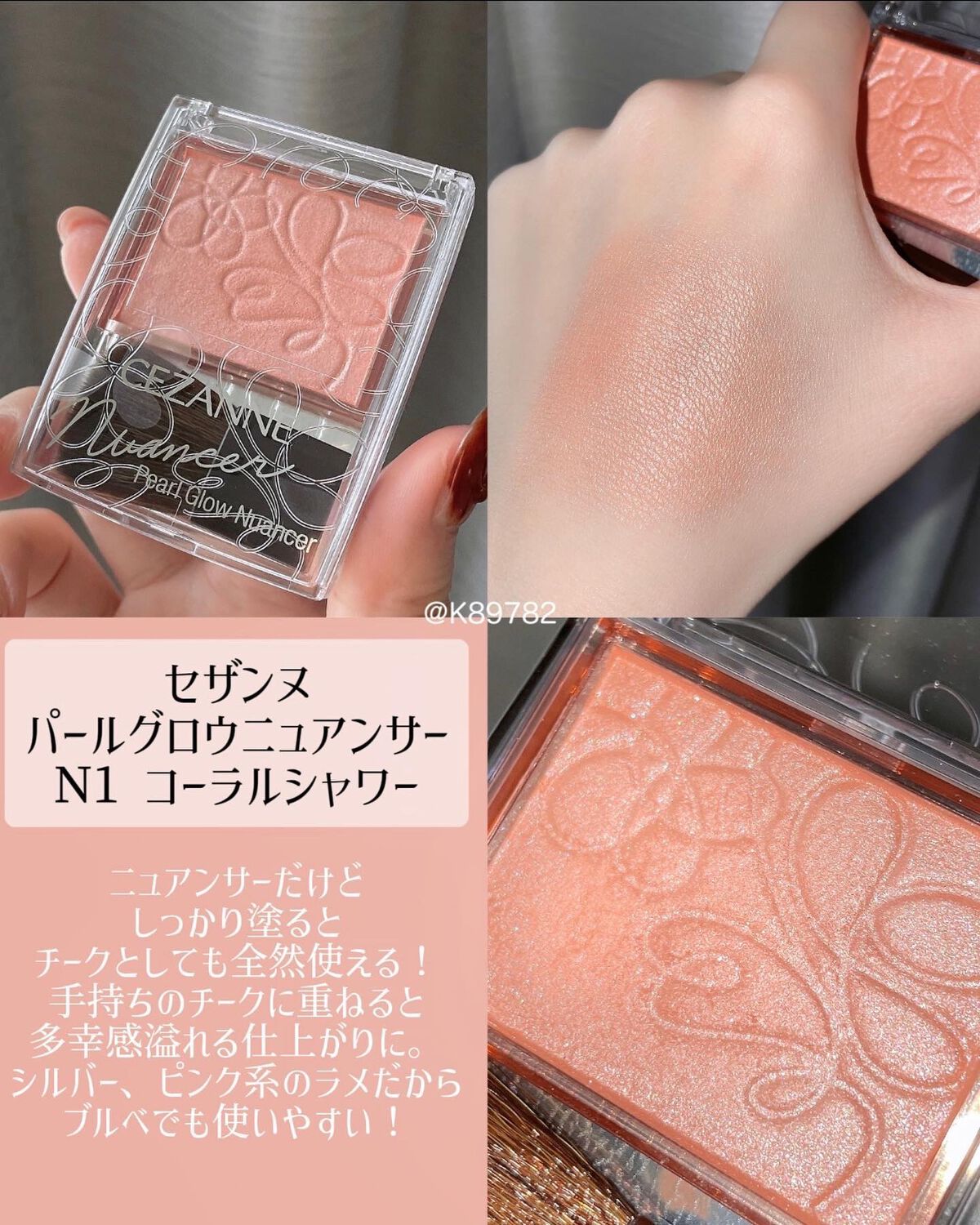 ニュアンサーという名前で売られていますがブルベ冬でそもそも色がのるチークが苦手という方は騙されたと思ってこれを使ってみて。 005Nの上から重ねても可愛い。 まず、キラキラが好きな方必見!!毛穴が目立つのが苦手な方は気をつけて。 ツヤ感と青みピンクならではの透明感で濃くなりにくく立体感と共に血色感をプラスしてくれる。