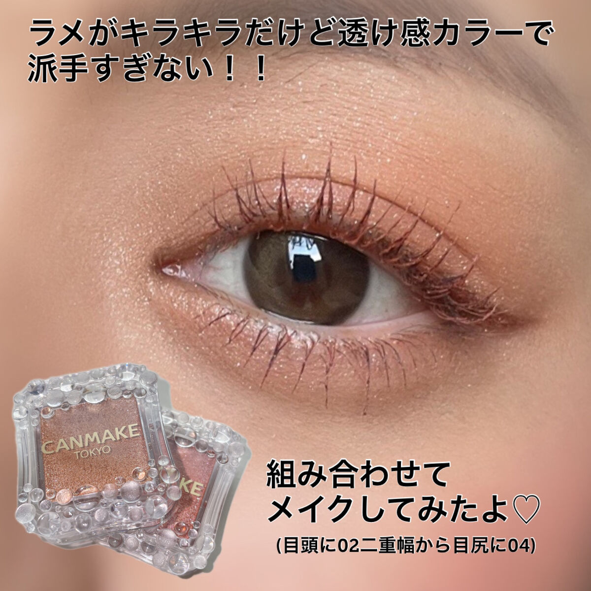 全体的に淡めです! イエベ向きな黄色みのあるブラウン系🤎 シマーなラメが可愛すぎる!! 密着度の高いラメでポンと乗せるだけで キラッキラ✨✨ 粉飛びもしないです! 発色はいいですが淡いので 初心者さんでも使いやすい!!!