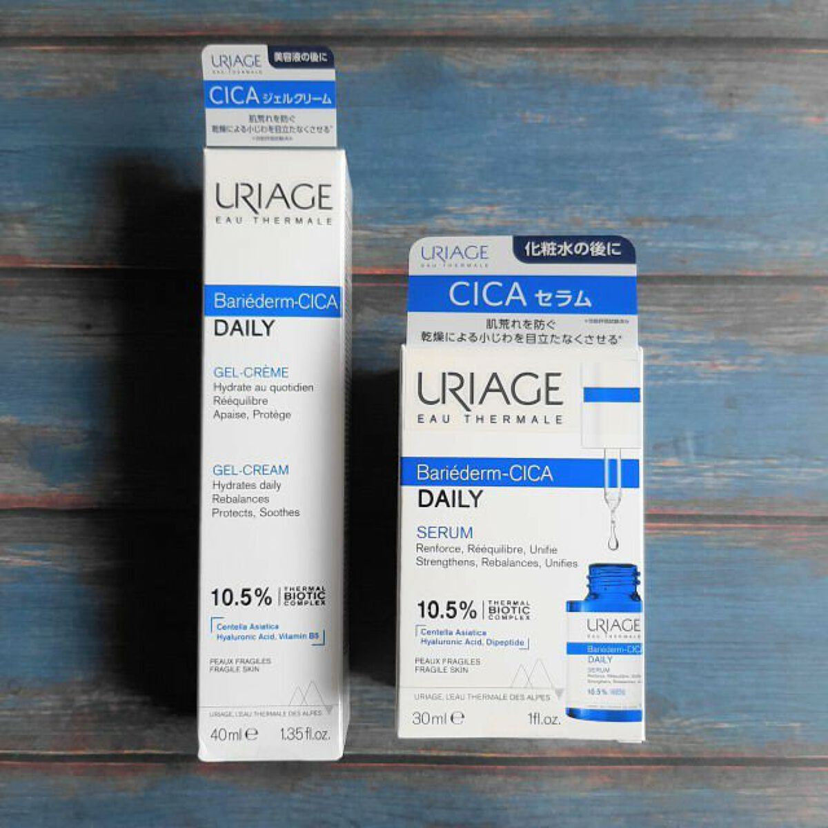 ユリアージュ温泉水*1をベースにした、敏感肌にも使えるクレンジングジェリーと化粧液です。 南仏ユリアージュは、フレンチアルプス・ベルドンヌ山脈のふもとにある「温泉療法」発祥の地。そのユリアージュ温泉水はミネラルを豊富に含み、肌のバリア機能をサポートしてくれるそうです。 クレンジングはジェルタイプで、ふき取りも洗い流しもできます。フローラル系のすっきりした香りがします。見た目はプルンとしたジェルですが、指でさわると少しネバっとしています。伸びが良くて、しっかりメイクになじんでくれますよ。 エッセンスは、化粧水と美容液を一つにした、2 in 1 化粧液です。ユリアージュ温泉水*¹がベースになっています。 こちらもすっきりとしたフローラル系の香りです。クレンジングより少し甘めの香りで、おフランス感があります。 テクスチャーは、少しとろみがあって濃厚です。青いボトルなのでさっぱりした使用感をイメージしていましたが、肌にのせるとしっとりとした使い心地でした。