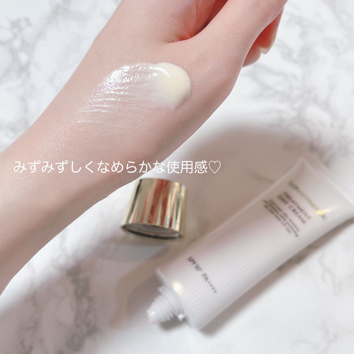 | 日焼け止め・UVケアランキング第33位 | ふわっとした硬めのクリームだけど、 するっと伸びが良く、 なじませているうちに水感を感じ、 なじむとベタつきなく さらっと軽い使い心地だよ。 | 詳細を見る | |