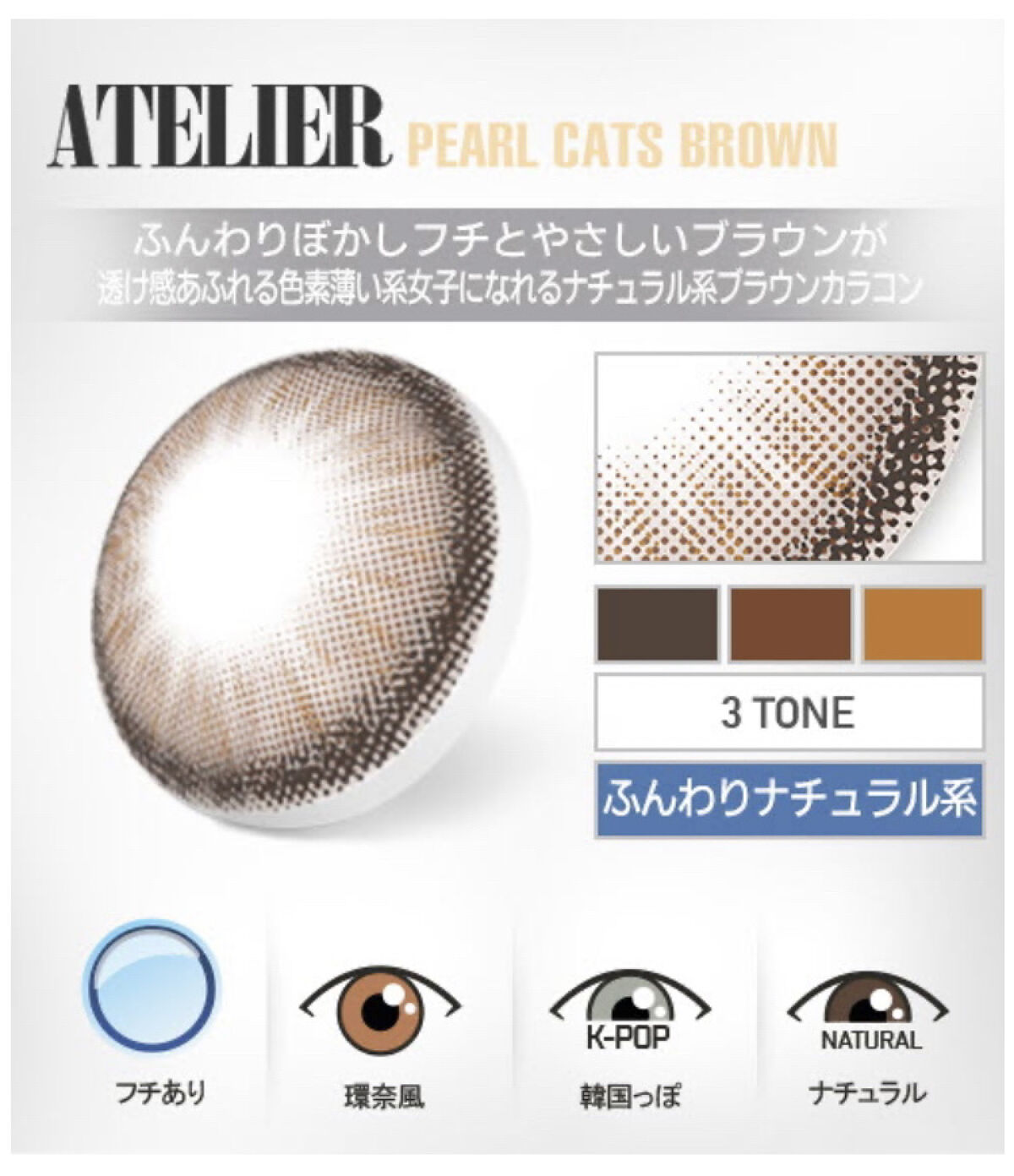 乱視用カラコン アトリエ・パールキャッツブラウン乱視用カラーコンタクト専門店 「トリカ」アトリエ・パールキャッツブラウン含水率:55%DIA(レンズ直径):14.2mmG.DIA(着色直径):13.5mmBC(ベースカーブ):8.6使用期間:...