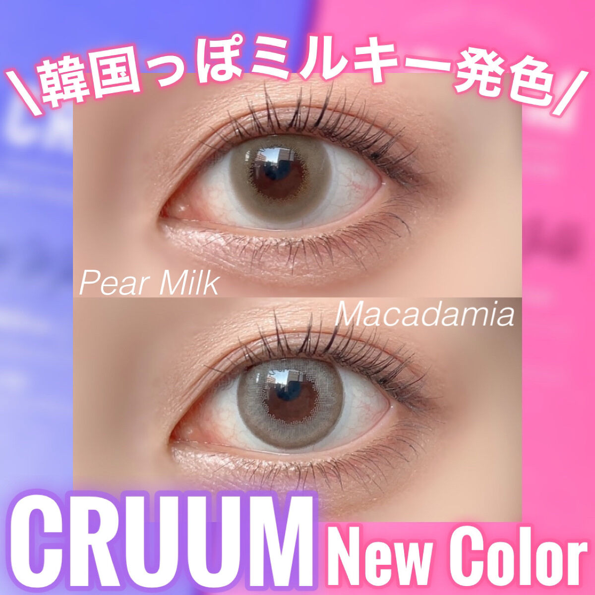 - cruum 忙しい女性にも最適な1DAY レンズケアも不要だから使用後も楽チン。 毎日取り換えるからいつも清潔に。 cruum UVカットプロテクト機能 年中降り注ぐ紫外線は肌だけでなく、 目にもダメージを与えます。 瞳に有害といわれている紫外線B波を 約95%、紫外線A波を約50%カット。 紫外線によるダメージから守ります。 cruum 含水率58%の高含水レンズ 含水率が高いと素材が柔らかくなるので、 眼に馴染みやすく付け心地が 柔らかくなります。 ※2025年10月10日〜パッケージデザインをカラーごとの個別パッケージからシリーズごとの統一パッケージへ変更。
