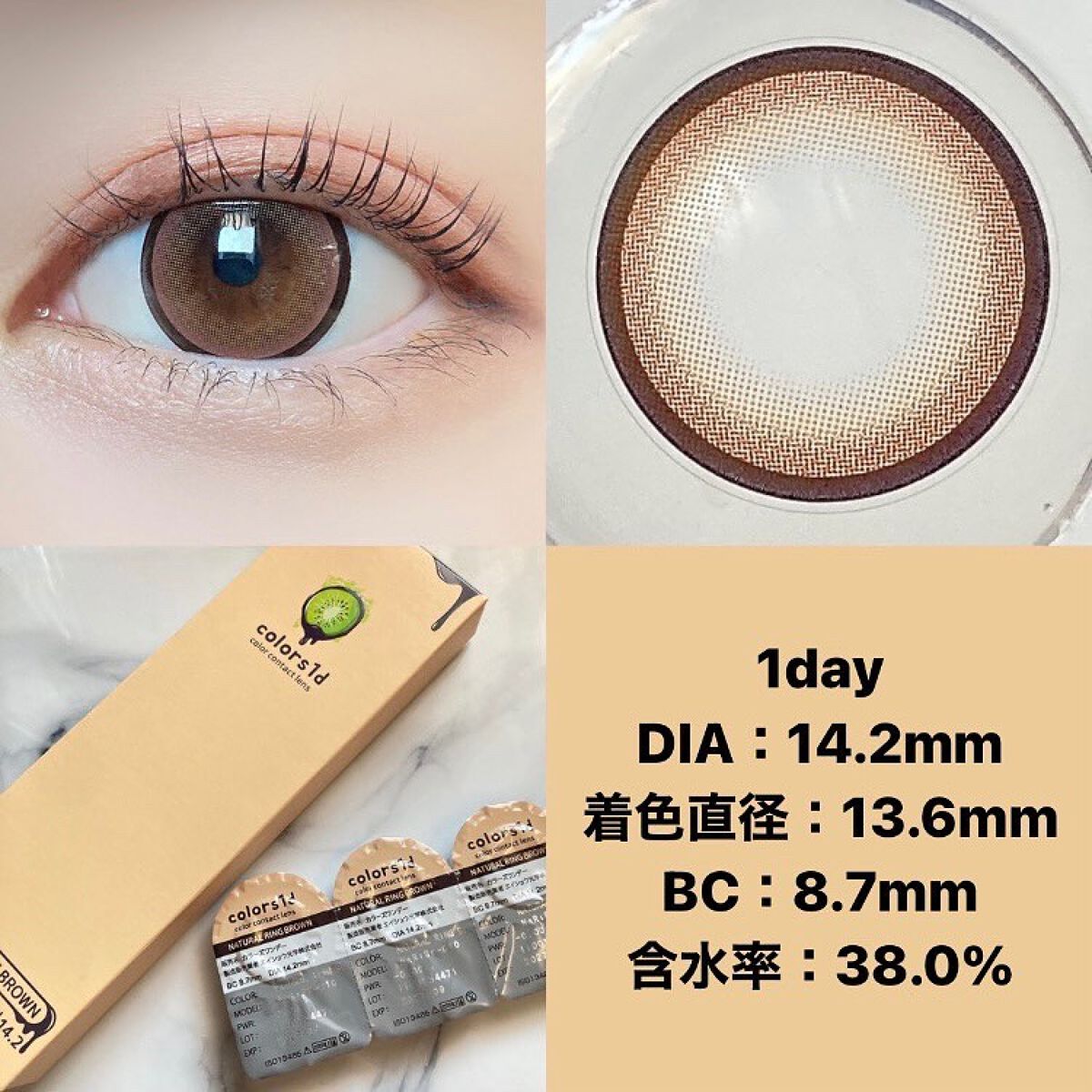 ☆colors☆①お色はHIBIKIDIA14.2mm/BC8.6mm/含水率38%②お色はナチュラルリングブラウンDIA14.2mm/BC8.7mm/含水率38%とりあえず・・・ヒビ子が可愛いぃぃo((>□<))o~❤️wただそれだけで買っ...