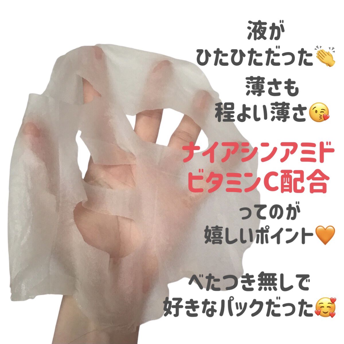 ほんのりオレンジで薄めのシートマスクですがしっかりしていてピタッと密着感がとっても良かったです 潤い保湿力や肌のトーンアップ効果👍 毛穴やくすみケアにも◎ ヴィーガンシートを使用しているので肌にも優しいマスクパックです 100%天然素材の柔らかいシートを採用