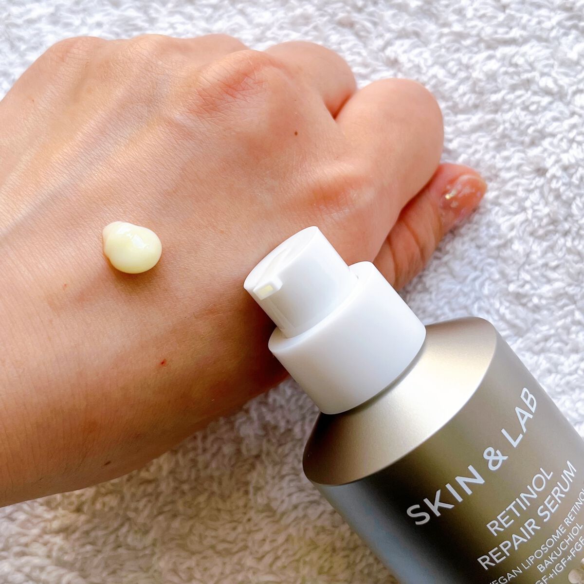 植物性で刺激を減らしたヴィーガンリポソームレチノール。3月に発売したSKIN&LABの新商品! 毛穴より238倍小さいヴィーガンリポソームレチノールが3%配合され、メラニンの生成を抑えしみそばかすを防ぎ、毛穴ケアや肌ハリをアップしてくれるセラム 柔らかいテクスチャーのクリーム様のセラム。すーっと伸びて肌馴染みがよく、ベタつかない使用感で心地よいです。