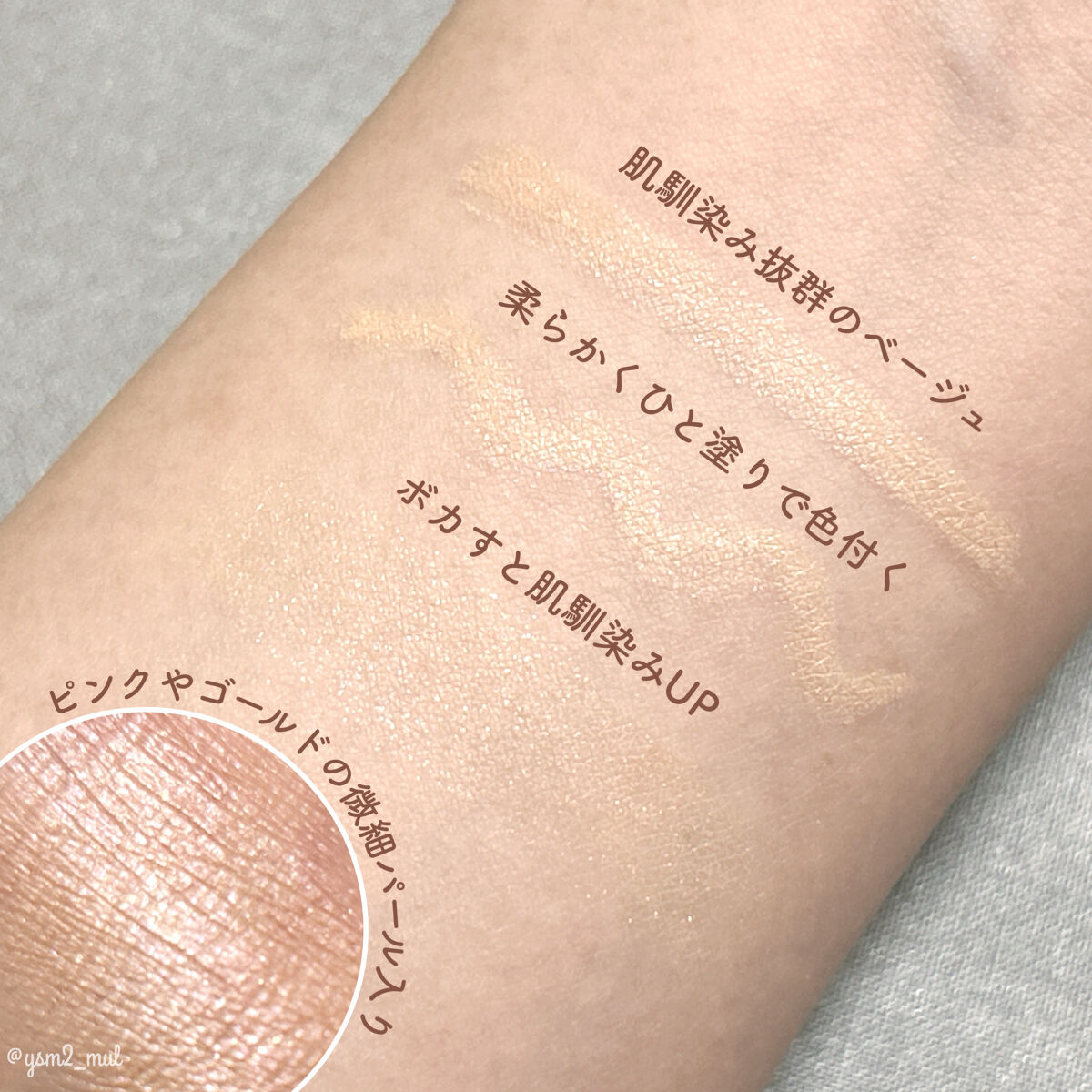 サラッとしたテクスチャーでスッと伸びでピタッと定着!でもしばらく経ってもパリッと乾燥する感じはないです◎ 芯が柔らかくスルッと描きやすい◎ただ黄味が結構強めなのでその点だけご注意ください! 涙袋はもちろん、アイライナーの下書きにも地雷盛りラインにもおすすめ!◎
