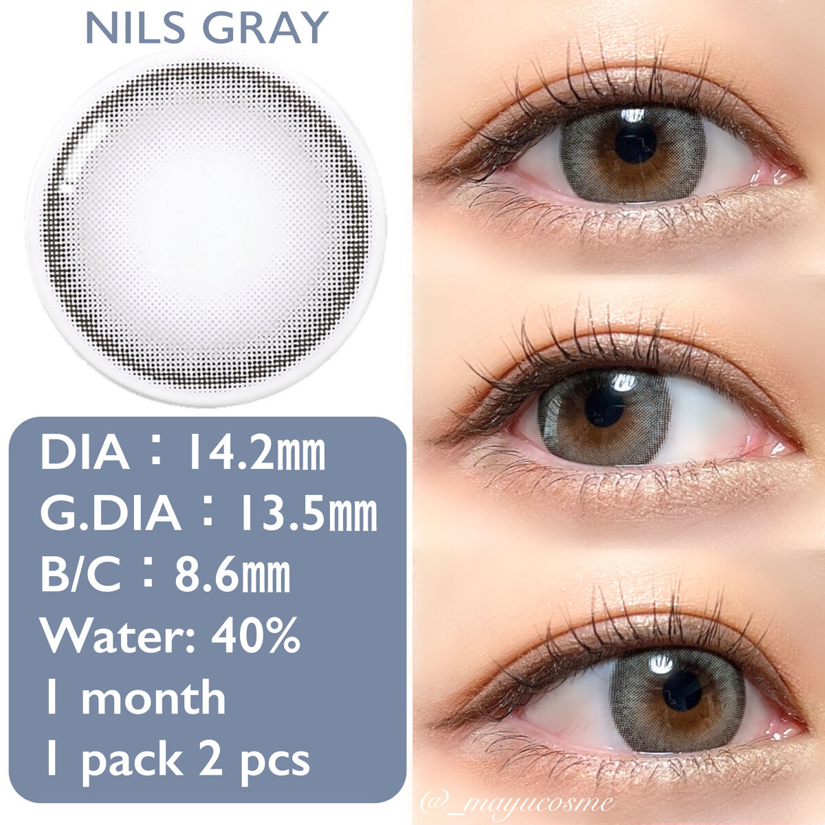 着色部分が少ないため、ナチュラルに盛りやすくそれでいて乾燥もしにくかったです!! 瞳の色に馴染みやすく、グレー特有の青っぽい感じが若干でましたが全然違和感ありません! フチがあるので、瞳がハッキリしてめちゃくちゃ盛れます!