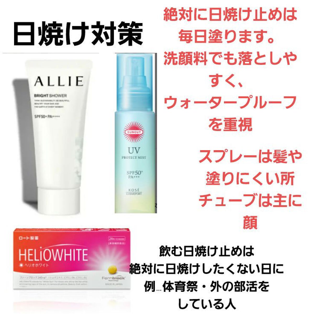 美容液も、日焼け対策も、ニキビケアもすぐに効果が出る訳ではないので、食生活、性格習慣にも気をつけたりする事が大切!(ビタミンB郡やビタミンC等) 日焼け止めはビオレアクアリッチも凄く良かった( ˙ ˘ ˙ ) キラキラしてるからハイライト塗らなくても綺麗に見えるかも😍