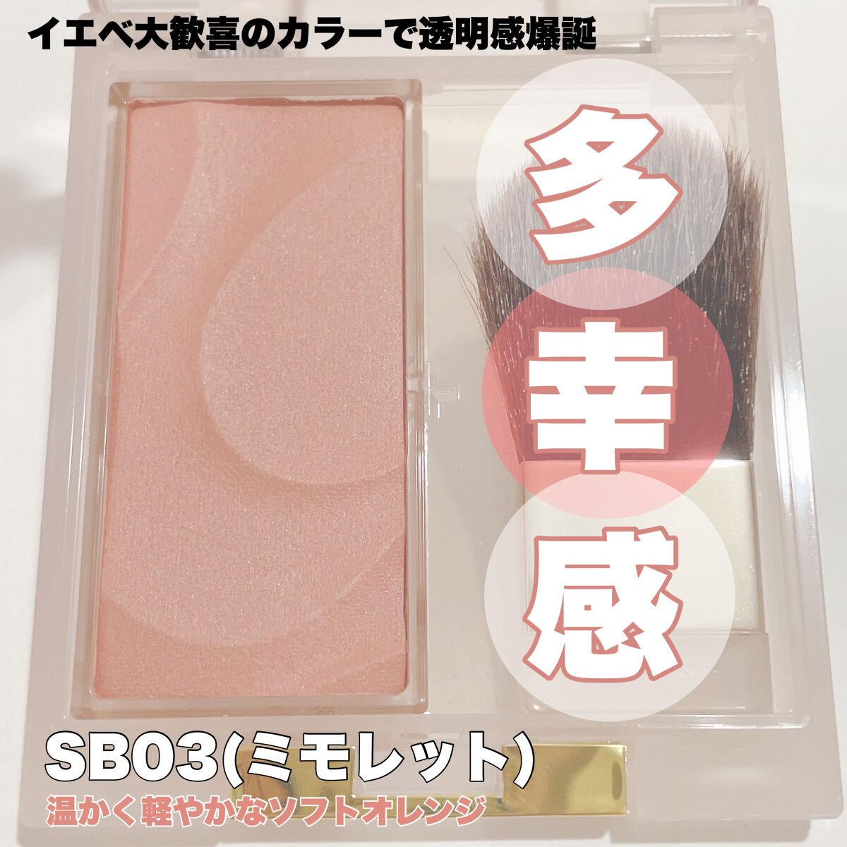 - <SB01 シーショア> タルク、トリエチルヘキサノイン、窒化ホウ素、ポリグリセリル-3ポリジメチルシロキシエチルジメチコン、ラウリン酸亜鉛、トリメチルシロキシケイ酸、メチルトリメチコン、ステアリン酸ソルビタン、セラミドNP、スクワラン、ホホバ種子油、オリーブ果実油、トコフェロール、メチルパラベン、(+/-)グンジョウ、マイカ、酸化チタン、酸化鉄、水酸化Al、赤202、赤226 <SB02 シスター> タルク、トリエチルヘキサノイン、窒化ホウ素、ポリグリセリル-3ポリジメチルシロキシエチルジメチコン、ラウリン酸亜鉛、トリメチルシロキシケイ酸、メチルトリメチコン、ステアリン酸ソルビタン、セラミドNP、スクワラン、ホホバ種子油、オリーブ果実油、トコフェロール、メチルパラベン、(+/-)グンジョウ、マイカ、酸化チタン、酸化鉄、水酸化Al、赤202、赤226 <SB03 ミモレット> タルク、トリエチルヘキサノイン、窒化ホウ素、ポリグリセリル-3ポリジメチルシロキシエチルジメチコン、ラウリン酸亜鉛、トリメチルシロキシケイ酸、メチルトリメチコン、ステアリン酸ソルビタン、セラミドNP、スクワラン、ホホバ種子油、オリーブ果実油、トコフェロール、メチルパラベン、(+/-)グンジョウ、マイカ、酸化チタン、酸化鉄、水酸化Al、赤202、赤226 <SB04 トースト> タルク、トリエチルヘキサノイン、窒化ホウ素、ポリグリセリル-3ポリジメチルシロキシエチルジメチコン、ラウリン酸亜鉛、トリメチルシロキシケイ酸、メチルトリメチコン、ステアリン酸ソルビタン、セラミドNP、スクワラン、ホホバ種子油、オリーブ果実油、トコフェロール、メチルパラベン、(+/-)グンジョウ、マイカ、酸化チタン、酸化鉄、水酸化Al、赤202、赤226 <SB05 ワルツ(限定)> タルク、トリエチルヘキサノイン、ステアリン酸ソルビタン、窒化ホウ素、ポリグリセリル-3ポリジメチルシロキシエチルジメチコン、ラウリン酸亜鉛、トリメチルシロキシケイ酸、メチルトリメチコン、セラミドNP、スクワラン、ホホバ種子油、オリーブ果実油、トコフェロール、メチルパラベン、(+/-)グンジョウ、ホウケイ酸(Ca/Al)、マイカ、金、酸化チタン、酸化鉄、水酸化Al、赤226 <SB06 オーケストラ(限定)> タルク、トリエチルヘキサノイン、ステアリン酸ソルビタン、窒化ホウ素、ポリグリセリル-3ポリジメチルシロキシエチルジメチコン、ラウリン酸亜鉛、トリメチルシロキシケイ酸、メチルトリメチコン、セラミドNP、スクワラン、ホホバ種子油、オリーブ果実油、トコフェロール、メチルパラベン、(+/-)グンジョウ、ホウケイ酸(Ca/Al)、マイカ、金、酸化チタン、酸化鉄、水酸化Al、赤226