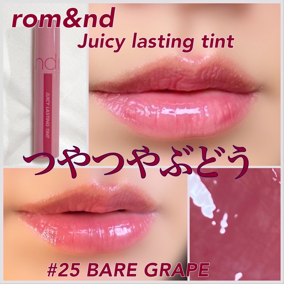 rom&nd ロムアンドジューシーラスティングティント25ベアグレープBAREGRAPE33ベアバインBAREVINErom&nd実際は、粘膜リップぽくて可愛い色❤ロムアンドのリップは、しっとり感あって、ティントで良き♪🥰#rom&nd#ジュ...