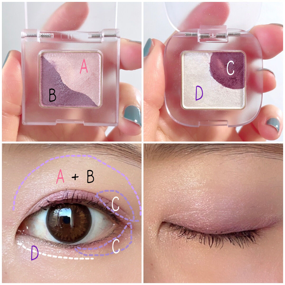 薄くて淡いペールピンクと柔らかいラベンダー。 艶々なパールがたっぷり入ってて瞼に透明感が出ます✨ 最初にピンクを全体に塗ってその上からラベンダーを重ねると明るいピンクになる。 涙袋にのせても可愛い💓 パール感のある白と紫でコントラストがきいてます。 上品で澄んだスノーホワイトは涙袋・目頭に入れるとラメがチラチラして可愛いし、ハイライトやベースとして瞼全体に塗るもよき✨✨ 濃いパープルは見た目よりピンクっぽく発色するから、ぜんぜんキツくならない。 いつものブラウンの代わりに、チップでしっかり塗って締め色にすると甘いフェミニンな目元に仕上がる💓 高発色の極細ピンクのアイライナー。 若干の青みを感じる鮮やかなピンク🌸 今回は目尻にちょっとだけ引いて馴染ませてますが、個人的にはWラインで使うのが好き🧚 メイクの幅が広がって遊びの出来るアイライナーです。