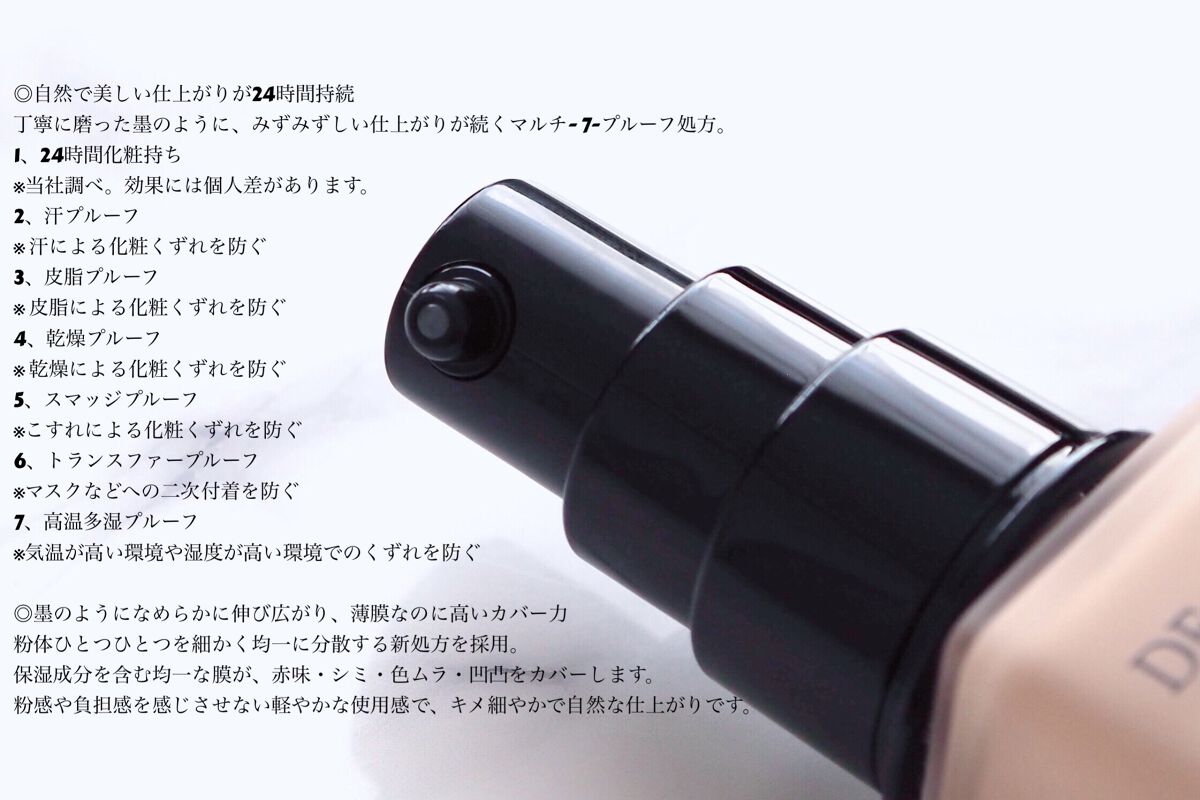 軽やかな使用感で、上品でセミマットな仕上がり👆👆 和墨からインスパイアされた、墨テクノロジーを採用。なめらかな感触で薄く均一に密着し、つけたての美しい仕上がりが持続します。 汗・皮脂・こすれ・高温多湿に強く、二次付着レスで、1日中化粧くずれを防ぎます。 自然で美しい仕上がりが24時間持続 丁寧に磨った墨のように、みずみずしい仕上がりが続くマルチ- 7-プルーフ処方。 墨のようになめらかに伸び広がり、薄膜なのに高いカバー力 粉体ひとつひとつを細かく均一に分散する新処方を採用。保湿成分を含む均一な膜が、赤味・シミ・色ムラ・凹凸をカバーします。 なめらかなテクスチャーで伸ばしやすいです✨ ムラなく綺麗に😍❤️ メイクアップ効果で色ムラや凹凸をカバーしてくれ、ナチュラルな仕上がりに✨