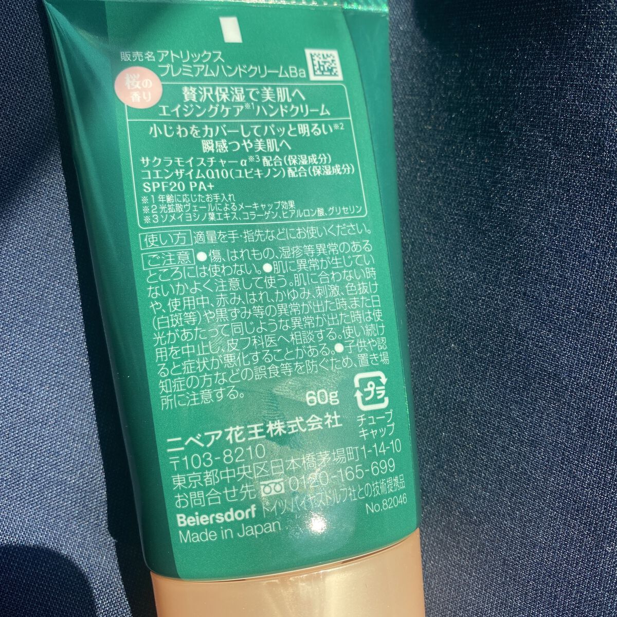 - 大人の贅沢保湿、プレミアムハンドケア。桜色のクリームが小じわを目立たせず、くすみを補正して明るい手肌に整えます(メーキャップ効果)。 保湿成分サクラモイスチャーα(ソメイヨシノ葉エキス、コラーゲン、ヒアルロン酸、グリセリン)配合。角層内部までうるおって、ハリ・つやを与えます。 UVカット成分配合で日やけによるシミ・そばかすを防ぎます(SPF20/PA+)。 うるおうのにべたつかない使用感。桜の香り。