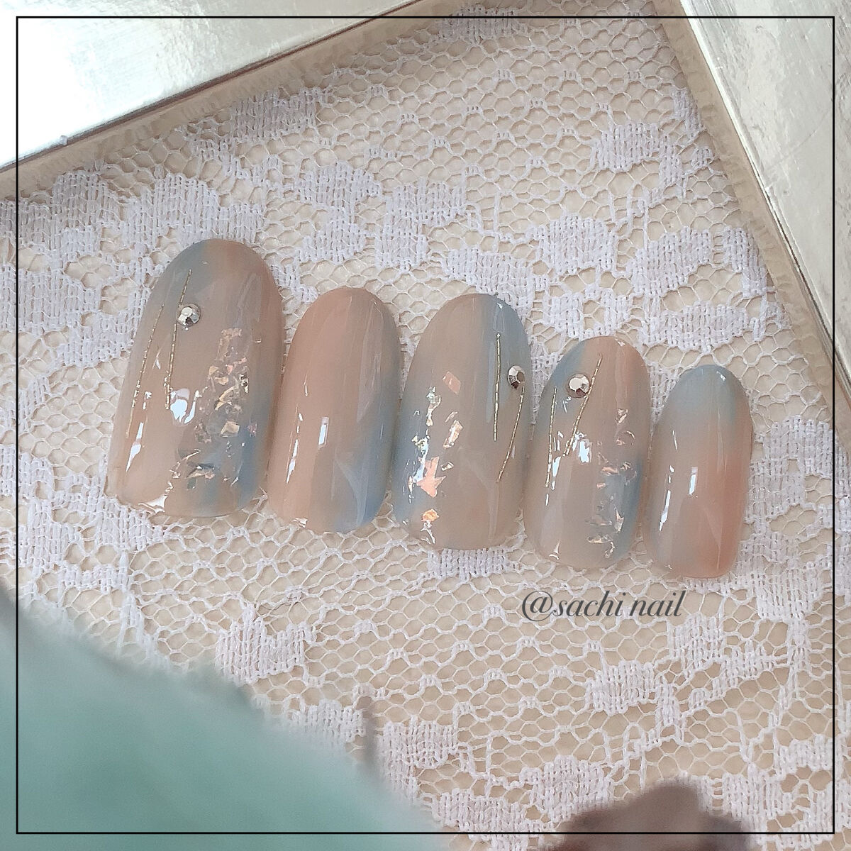 可愛い❤️ くすみベージュとブルーの ニュアンス✨オシャレですね✨ やってみたくなりました😆