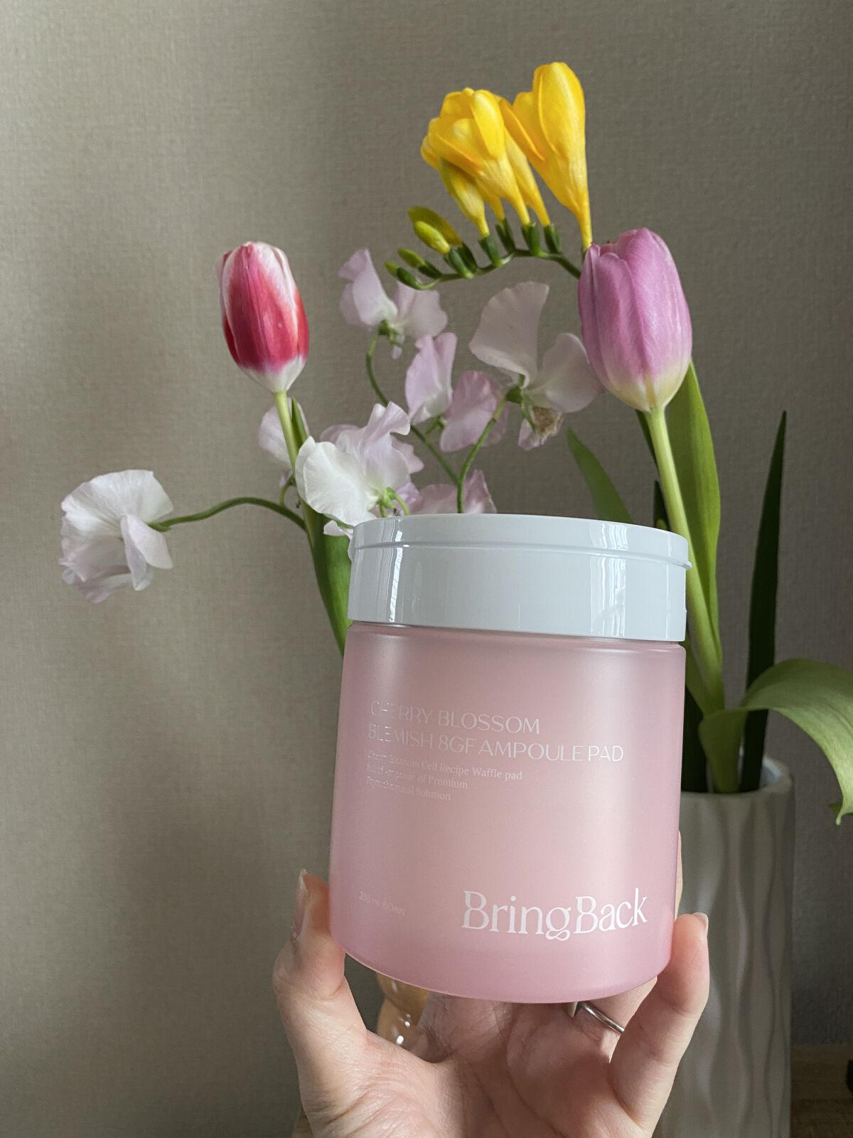 独自研究の桜フィトプラセンタ、桜エキス配合のアンプル1本をそのまま詰め込んだトナーパッドで シミ&くすみをケアしてなめらかな毛穴に仕上げてくれます😍 驚いたのはパッド1枚がとても分厚いこと✨ 平均的なトナーパッドの2倍くらいありそうなパッドに 液がたっぷり含まれているので朝の洗顔後の拭き取りなどにおすすめです☺️ 桜の良い香りもほのかにして 今の季節にぴったりです🌸
