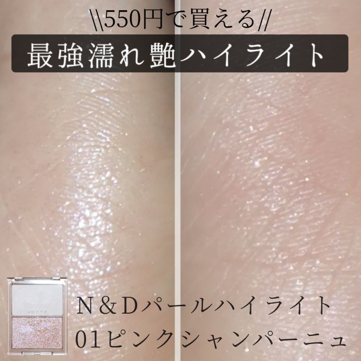 - ★全ての光を味方につける「N&Dパールハイライト」 シーンやなりたい印象に合わせて使い分けられるツインカラーの万能ハイライト。商品名のN&D(Night & Day)という名の通り、昼は自然光を意識した肌なじみの良いニュアンスカラーでナチュラルなつや肌に、夜は華やかな繊細ラメのパールハイライトを使ってメリハリのある美人顔に、2つのカラーでそれぞれ異なる印象を演出することができます。