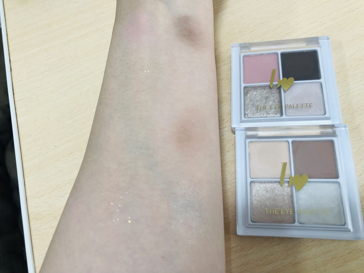 ちゃんとスウォッチしなかった私が悪いのですが、ロージーベージュという名前からもっとローズ系の色味かと思っていたら、結構黄色みが強い😭 特に右下の締め色が銅っぽいカラーかつゴールドラメで私の肌の上ではかなり浮いてしまいます なので、私は締め色は使わずその他の3色で仕上げています💪 1stブルベ 夏2ndイエベ春の私は締め色以外は使えます ただ締め色以外はかなりナチュラル発色で、しっかりメイクしたい人には不向き 自然に陰影をつけたい、ナチュラルメイクがしたい人にオススメしたいです! 左上のラメは結構ザグザグラメでした オフィスメイクにはちょっと派手すぎるかな 思っていたよりザグザグラメで私はややザラザラすると感じてしまいました ラメ飛びも普通程度にします 結論としては、締め色以外の3色をナチュラルメイクしたい時に使えそう💪 でもリピはないかなー 購入検討中の方の参考になれば嬉しいです