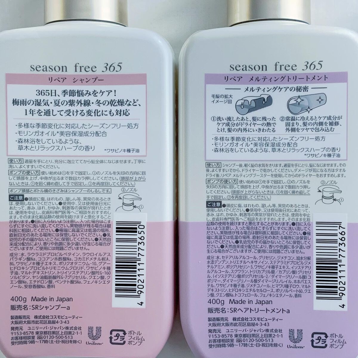 商品詳細情報season free 365 リペア シャンプー/メルティングトリートメント