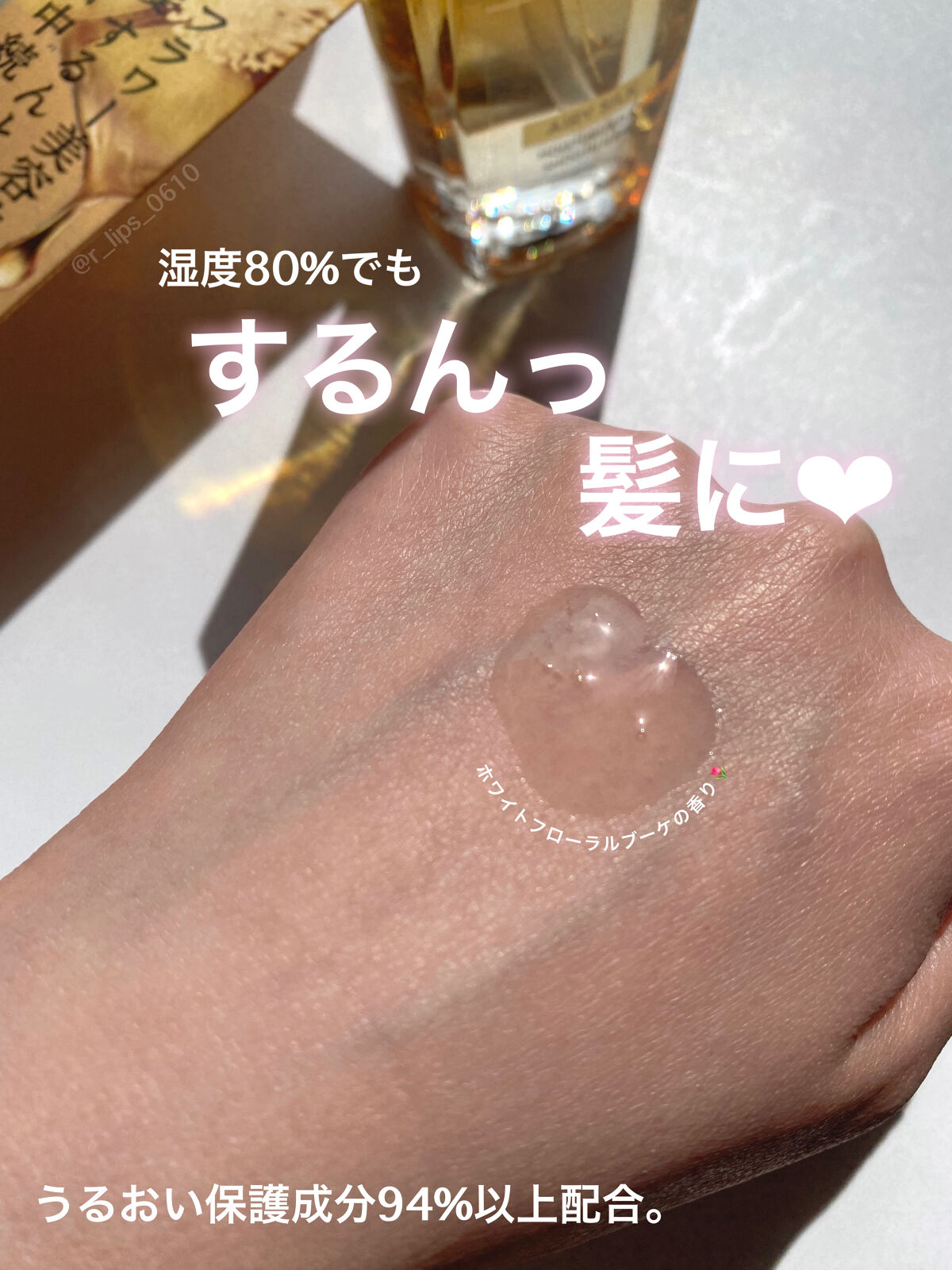 - べたつくオイルで、ぺちゃんこ髪になってない? スーッと軽いのに、うるおってまとまる ツヤめく、さらふわ髪に #中うる外さら #フラワー美容オイル 16%軽くなった*新ヘアオイル ヘアオイルがベタつくのは、厚塗りになってるから・・・今までより16%軽く。ヴェールのように薄付き。 指通りするんとサラサラ、湿度80%でもまとまる。 うるおい保護成分を94%以上配合。 つけた瞬間、髪にスッとなじんで一体化、内部をうるおいで満たす 一日中、花のようにみずみずしいツヤ髪へ。 新登場うねり・クセ毛ケアライン 新”ホワイトフローラルブーケの香り” 日本人調香師によって開発 ピオニーとピーチのやさしい香りで、清潔感のある自然な印象に。 *ロレアル パリ従来品比