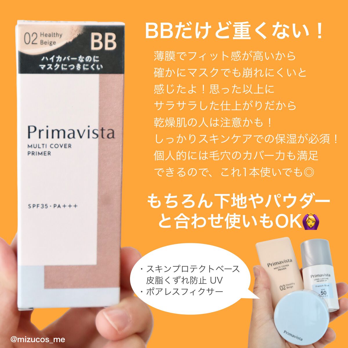 - SPF 35・PA+++ きめ細やかなさらつやフェイスが完成& 持続するハイカバーB B ● 1本で5ステップが完成します。 ①日やけ止め乳液 ② 化粧下地 ③ コンシーラー ④ おしろい ⑤ フェースカラー ● 仕上げパウダーなしでも、サラサラに仕上がり、テカリにくい「パウダリーチェンジ処方」。 マスク着用時10時間色持ちデータ取得済み 当社調べ。効果には個人差があります。 ◯ テカリ・べたつきを防いで、きれいな仕上がりが続きます ◯ 保湿成分配合(アスナロ枝エキス) ◯ 香料は配合されていません