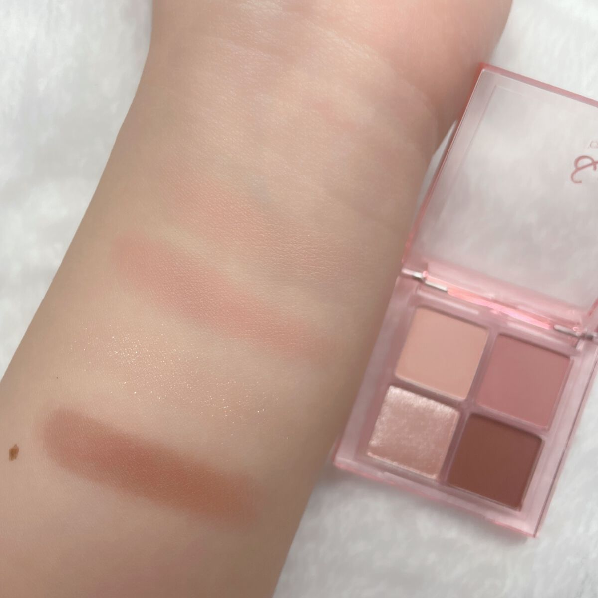 見た目の可愛さ、高級さ、ロゴ、配色など、見るだけで欲しくなっちゃう可愛いアイシャドウパレットですよね🥰 発色が良くて色持ちも良いところと、ラメが綺麗すぎて感動しました🥺 マット部分の粉質はふわぁっとしていてぼかしやすいので、綺麗なグラデがつくれます。 どの色も本当に可愛くて使いやすくて捨て色がないです!! みなさんが口を揃えて良い!◎って言うだけあって、本当に買ってよかったです!!