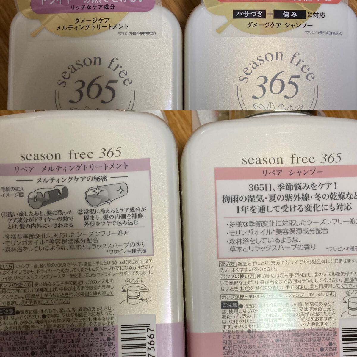 商品詳細情報season free 365 リペア シャンプー/メルティングトリートメント
