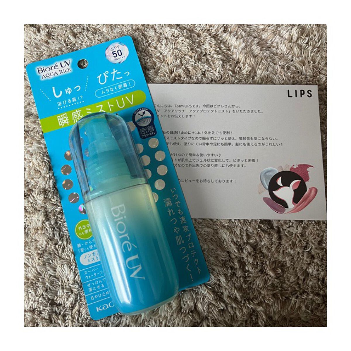 ビオレビオレUVアクアリッチアクアプロテクトミストいつでもどこでも\しゅっ/ぴたっ速攻プロテクト!便利なスプレータイプ手持ちの日焼け止めを塗った後、塗り直しの時に使用しています少しアルコールのニオイを感じたので、子どもの顔には使えませんでした...