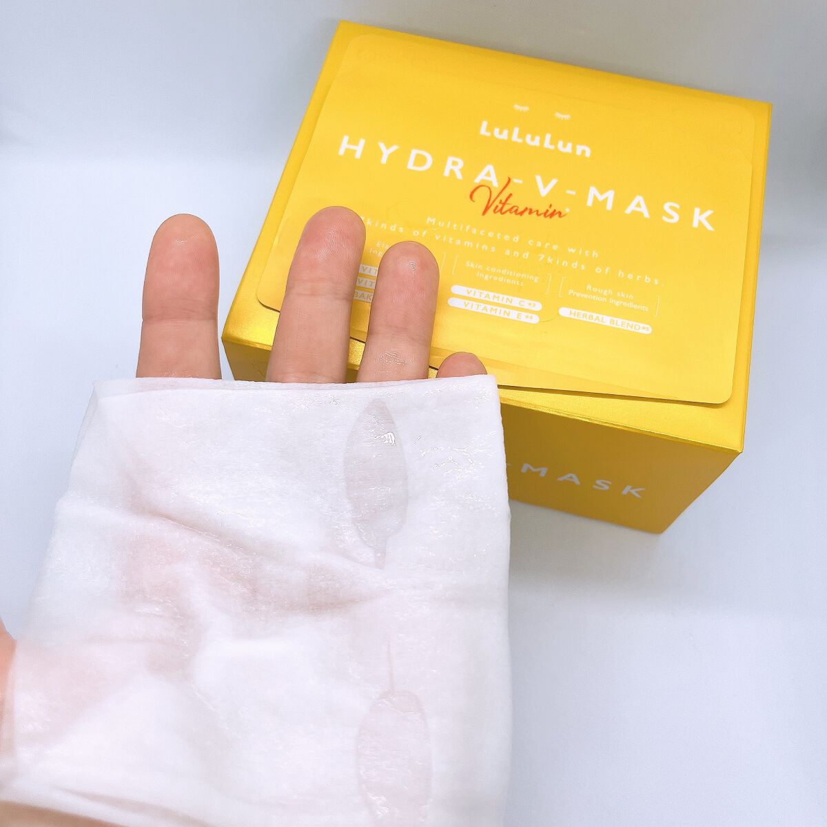 7種類のビタミンと7種類のハーブで肌全体を素早くケア&集中肌メンテナンス 新開発のHIFU感覚シートでリフトアップしながら肌のすみずみまでうるおいで満たし、毛穴の目立たないうるおいたっぷりの“水光肌”に導いてくれます シートは厚みのある柔らかいシートで、程よく厚みがあり伸縮性もあるので、お顔にぴったり密着します