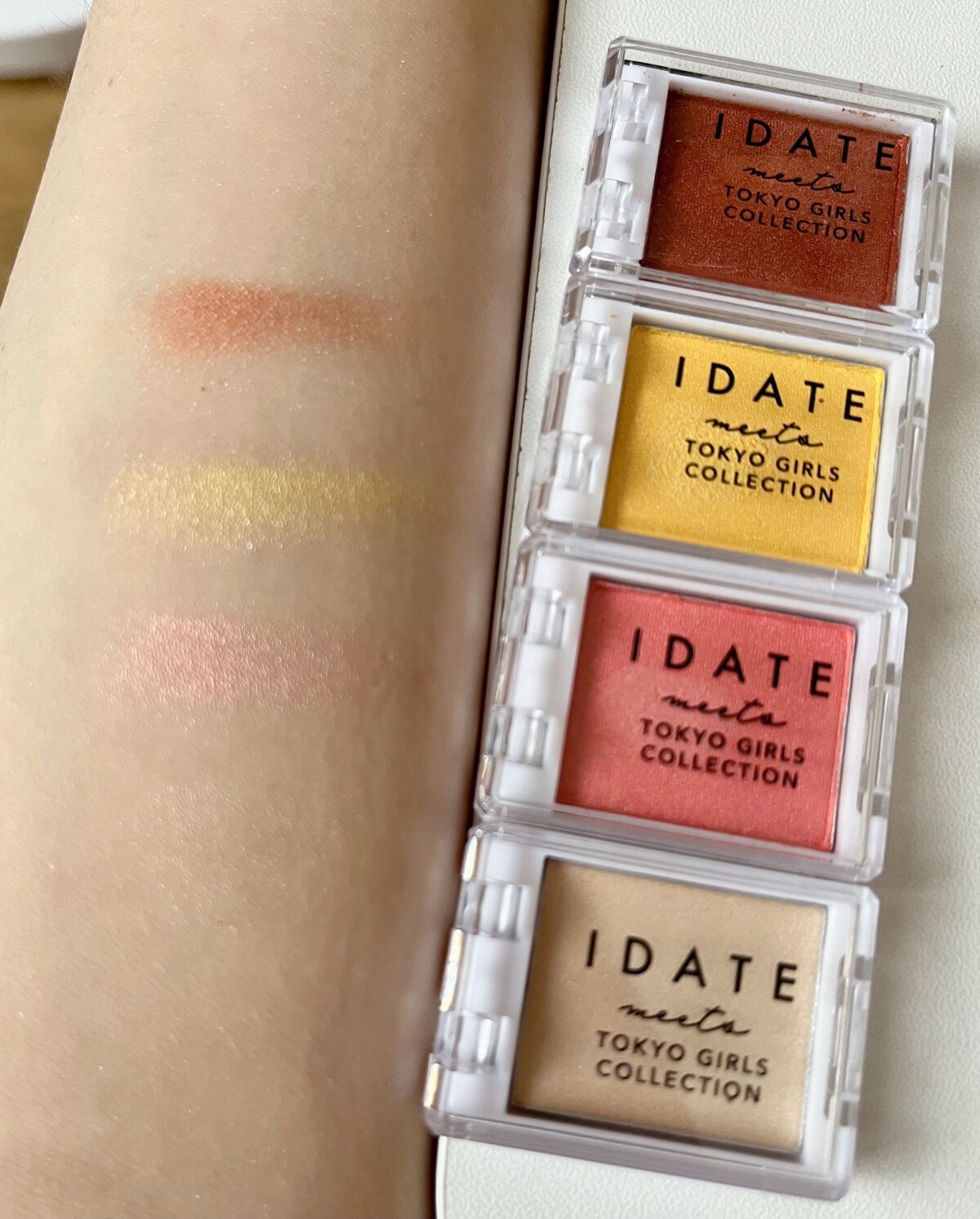 パキッとした色味のピンクのアイシャドウです! ピンクが特に発色がよく、目尻に付けたら可愛いと思います! 柔らかな色合いのラメのアイシャドウです! 色はあまりつかないので、キラキラツヤツヤさせるのに使うといいかも? 夏に使いたいオレンジのアイシャドウです! 夏メイクにピッタリかな〜… 珍しい青とピーチピンクのアイシャドウです! こちらも夏にポイントとして使いたい、爽やかな色でした! 大人っぽい落ち着いた色合いのアイシャドウです! 大人メイク、秋メイクにいい色味だなぁ…って思います。 こちらは珍しいイエローが入ったアイシャドウです! 可愛い色合いで、ふんわりとしたメイクに出来そう…!
