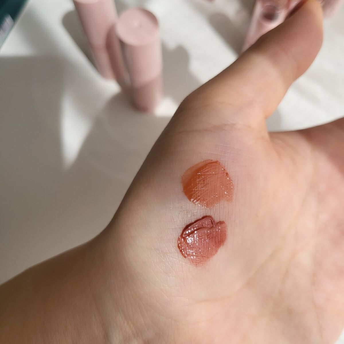 使い心地は良いです👌 本当に膜が張ってるみたい。落ちにくい。ツルンとトップコートをしてるような、艶がメイクのポイントになってあざと可愛い。 ただ、若干全体的に定着したら色が1トーン深くなる気がするので、濃い色が苦手な人は注意。 基本イエベ秋(ブルベ冬味のカラーもOK)なわたしの ファーストインプレッションは、 好き:・01スチームヌード ・04 反撃モーブ トレンドで好き:・03 惑星ロマンス 安定:・05 ベイクドキャラメル 難しい:・X02 反則ネイキッド