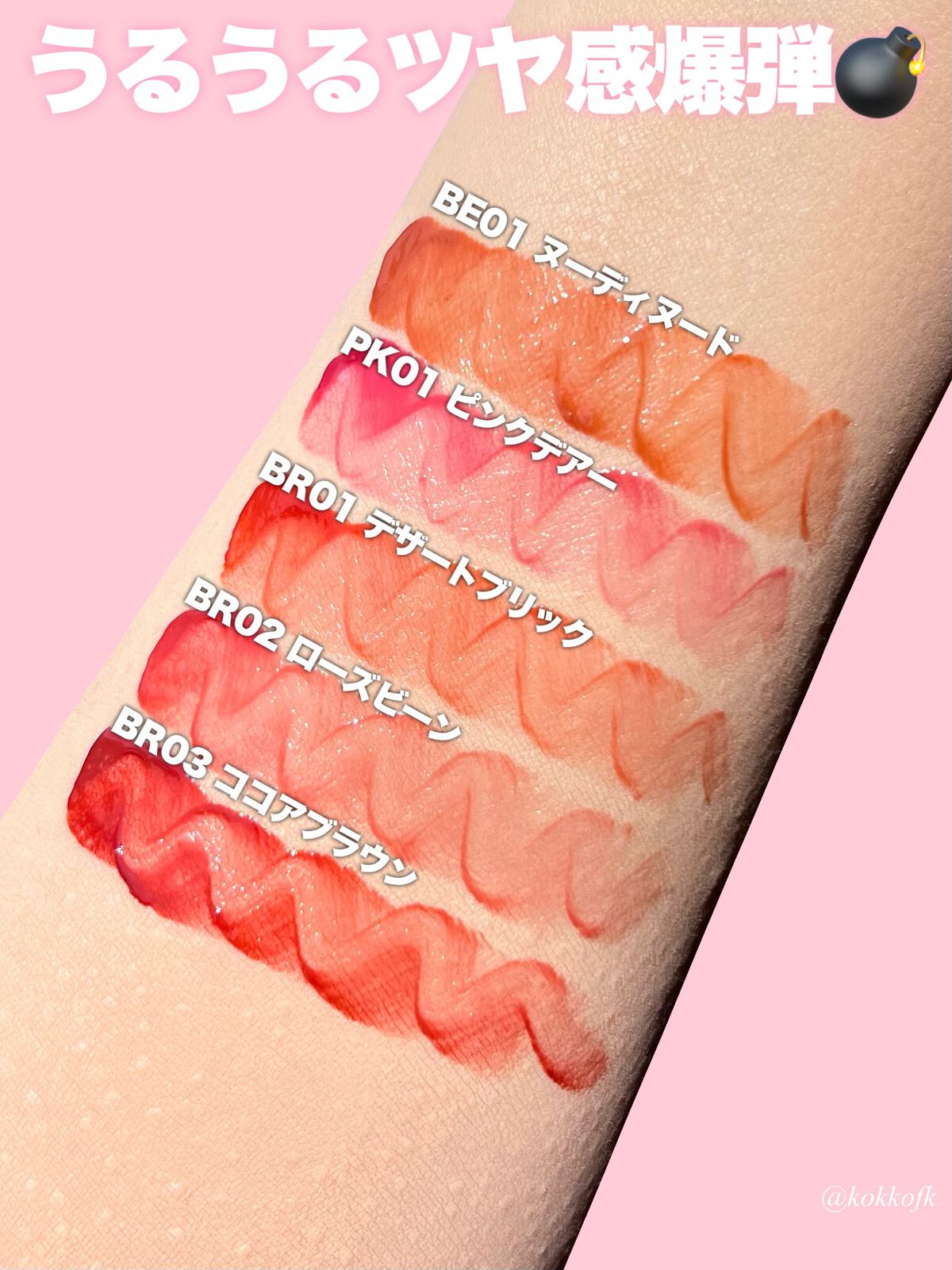 【&ndbyrom&ndティント全色レポ💗】#アンドバイロムアンドグラッシーホムティント¥780(税込)BE01ヌーディーヌードBR01デザートブリックBR02ローズビーンBR03ココアブラウンPK01ピンクデアーLAWSONで買えます!#コ...