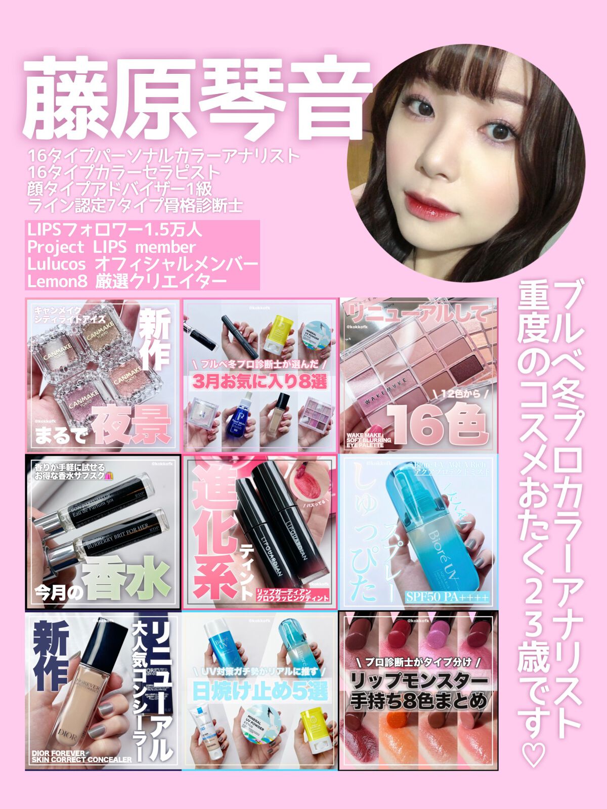 このバームはワセリンのようなとにかくうるうるの透明ツヤ感で、唇に負担なく薄づきの発色です💓 やや黄みの柔らかいヌードベージュ 明るさが得意なイエベ春におすすめ! 明るく澄んだ青みピンク 明るさが得意なブルベにおすすめ! やや黄みの澄んだコーラルレッド 2ndブルベのイエベ春におすすめ! 鮮やかで澄んだ青みレッド 鮮やかさが得意なブルベにおすすめ! 柔らかいくすみベージュブラウン 柔らかい色が得意なイエベにおすすめ! やや青みの柔らかいくすみレッド 柔らかい色が得意なブルベ夏に! しっかり青みのモーブピンク 1st2ndブルベにおすすめ!