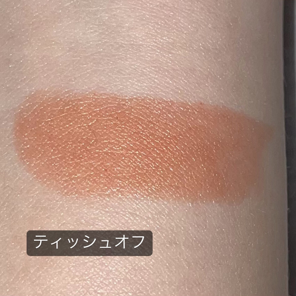 まず驚いたのがゴールドラメが思ってたよりも沢山入っていたこと✨ これだけで買ったことに悔いは無いです☁️ ティッシュオフ前はオレンジ色が輝いている感じがして 可愛いけど、オフ後はオレンジが薄くなることでたくさんのゴールドラメがオレンジより強調されるように感じました❤️🔥
