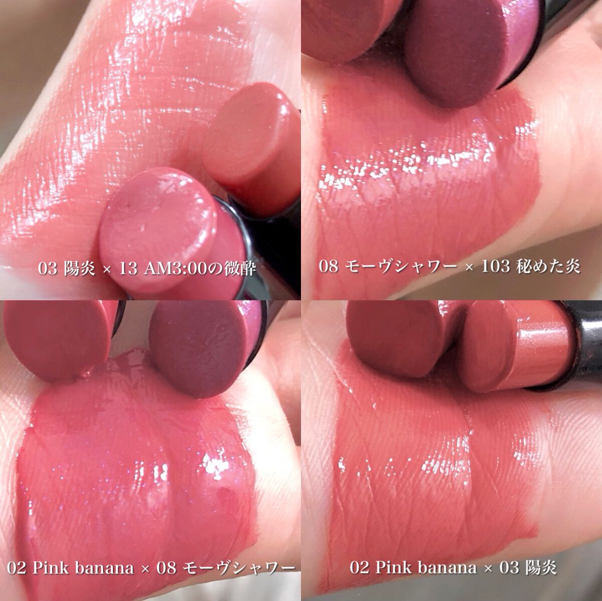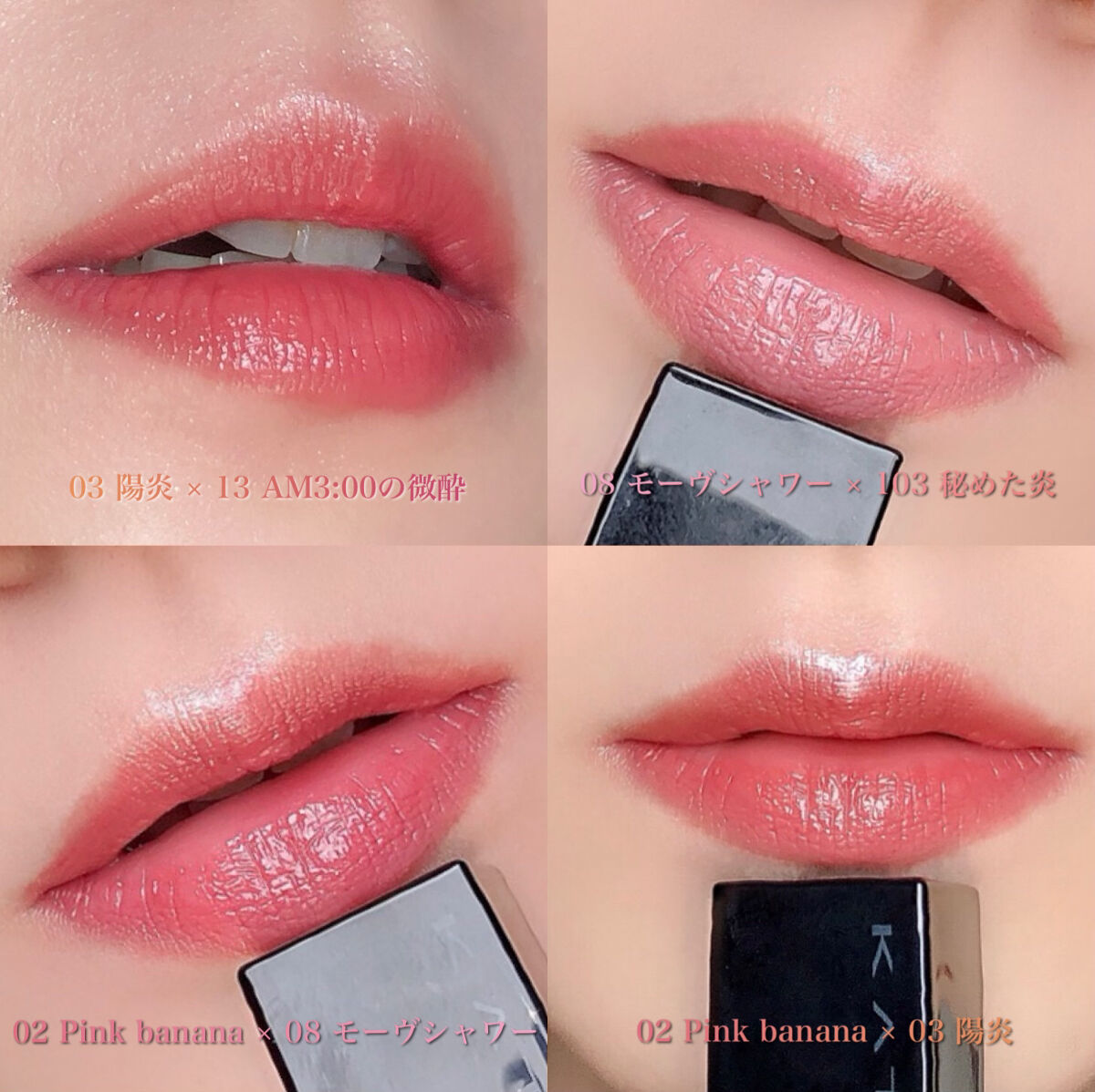 - <01 欲望の塊> テトライソステアリン酸ジペンタエリスリチル、トリ(カプリル酸/カプリン酸)グリセリル、オクチルドデカノール、ラウロイルグルタミン酸ジ(フィトステリル/オクチルドデシル)、ビスアルキル(C16-18)グリセリルウンデシルジメチコン、イソノナン酸イソトリデシル、水添ポリイソブテン、ラウロイルグルタミン酸ジ(オクチルドデシル/フィトステリル/ベヘニル)、パラフィン、合成ワックス、ダイマージリノール酸(フィトステリル/イソステアリル/セチル/ステアリル/ベヘニル)、マイクロクリスタリンワックス、水添マイクロクリスタリンワックス、ヒドロキシステアリン酸エチルヘキシル、トコフェロール、ホホバ種子油、オリーブ果実油、アーモンド油、(エチレン/プロピレン)コポリマー、ポリエチレン、ジメチコン、(+/-)(チタン/酸化チタン)焼結物、マイカ、ラウロイルアスパラギン酸Na、ラウロイルリシン、塩化亜鉛、酸化チタン、酸化鉄、水酸化Al、硫酸Ba、トリイソステアリン酸イソプロピルチタン、酸化スズ、ホウケイ酸(Ca/Al)、合成フルオロフロゴパイト、黄4、黄5、赤104(1)、赤201、赤202 <02 ピンクバナナ> テトライソステアリン酸ジペンタエリスリチル、トリ(カプリル酸/カプリン酸)グリセリル、オクチルドデカノール、ラウロイルグルタミン酸ジ(フィトステリル/オクチルドデシル)、ビスアルキル(C16-18)グリセリルウンデシルジメチコン、イソノナン酸イソトリデシル、水添ポリイソブテン、ラウロイルグルタミン酸ジ(オクチルドデシル/フィトステリル/ベヘニル)、パラフィン、合成ワックス、ダイマージリノール酸(フィトステリル/イソステアリル/セチル/ステアリル/ベヘニル)、マイクロクリスタリンワックス、水添マイクロクリスタリンワックス、ヒドロキシステアリン酸エチルヘキシル、トコフェロール、ホホバ種子油、オリーブ果実油、アーモンド油、(エチレン/プロピレン)コポリマー、ポリエチレン、ジメチコン、(+/-)(チタン/酸化チタン)焼結物、マイカ、ラウロイルアスパラギン酸Na、ラウロイルリシン、塩化亜鉛、酸化チタン、酸化鉄、水酸化Al、硫酸Ba、トリイソステアリン酸イソプロピルチタン、酸化スズ、ホウケイ酸(Ca/Al)、合成フルオロフロゴパイト、黄4、黄5、赤104(1)、赤201、赤202 <03 陽炎> テトライソステアリン酸ジペンタエリスリチル、トリ(カプリル酸/カプリン酸)グリセリル、オクチルドデカノール、ラウロイルグルタミン酸ジ(フィトステリル/オクチルドデシル)、ビスアルキル(C16-18)グリセリルウンデシルジメチコン、イソノナン酸イソトリデシル、水添ポリイソブテン、ラウロイルグルタミン酸ジ(オクチルドデシル/フィトステリル/ベヘニル)、パラフィン、合成ワックス、ダイマージリノール酸(フィトステリル/イソステアリル/セチル/ステアリル/ベヘニル)、マイクロクリスタリンワックス、水添マイクロクリスタリンワックス、ヒドロキシステアリン酸エチルヘキシル、トコフェロール、ホホバ種子油、オリーブ果実油、アーモンド油、(エチレン/プロピレン)コポリマー、ポリエチレン、ジメチコン、(+/-)(チタン/酸化チタン)焼結物、マイカ、ラウロイルアスパラギン酸Na、ラウロイルリシン、塩化亜鉛、酸化チタン、酸化鉄、水酸化Al、硫酸Ba、トリイソステアリン酸イソプロピルチタン、酸化スズ、ホウケイ酸(Ca/Al)、合成フルオロフロゴパイト、黄4、黄5、赤104(1)、赤201、赤202 <04 パンプキンワイン> テトライソステアリン酸ジペンタエリスリチル、トリ(カプリル酸/カプリン酸)グリセリル、オクチルドデカノール、ラウロイルグルタミン酸ジ(フィトステリル/オクチルドデシル)、ビスアルキル(C16-18)グリセリルウンデシルジメチコン、イソノナン酸イソトリデシル、水添ポリイソブテン、ラウロイルグルタミン酸ジ(オクチルドデシル/フィトステリル/ベヘニル)、パラフィン、合成ワックス、ダイマージリノール酸(フィトステリル/イソステアリル/セチル/ステアリル/ベヘニル)、マイクロクリスタリンワックス、水添マイクロクリスタリンワックス、ヒドロキシステアリン酸エチルヘキシル、トコフェロール、ホホバ種子油、オリーブ果実油、アーモンド油、(エチレン/プロピレン)コポリマー、ポリエチレン、ジメチコン、(+/-)(チタン/酸化チタン)焼結物、マイカ、ラウロイルアスパラギン酸Na、ラウロイルリシン、塩化亜鉛、酸化チタン、酸化鉄、水酸化Al、硫酸Ba、トリイソステアリン酸イソプロピルチタン、酸化スズ、ホウケイ酸(Ca/Al)、合成フルオロフロゴパイト、黄4、黄5、赤104(1)、赤201、赤202 <05 ダークフィグ> テトライソステアリン酸ジペンタエリスリチル、トリ(カプリル酸/カプリン酸)グリセリル、オクチルドデカノール、ラウロイルグルタミン酸ジ(フィトステリル/オクチルドデシル)、ビスアルキル(C16-18)グリセリルウンデシルジメチコン、イソノナン酸イソトリデシル、水添ポリイソブテン、ラウロイルグルタミン酸ジ(オクチルドデシル/フィトステリル/ベヘニル)、