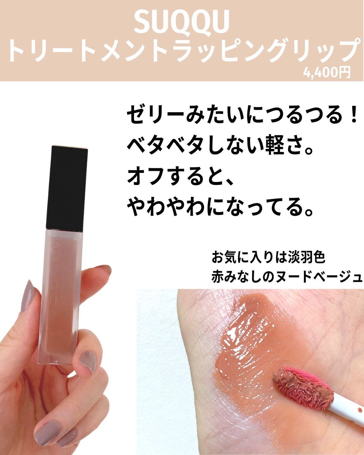 ひと塗りでツヤツヤの潤う唇に💋 塗ってしばらくしてからもサラサラうるうるで乾燥せず、唇が荒れない😳✨ 人気色の02淡羽色はどんなメイクにもマッチするおしゃれなキャラメルベージュ🌸 この絶妙におしゃれなカラーがさすがSUQQU様🥺💕 でも私の唇だとちょっと色味が出にくいかも💦もう少し色味が強くても良かったかな。 04のテラコッタも狙っております😎