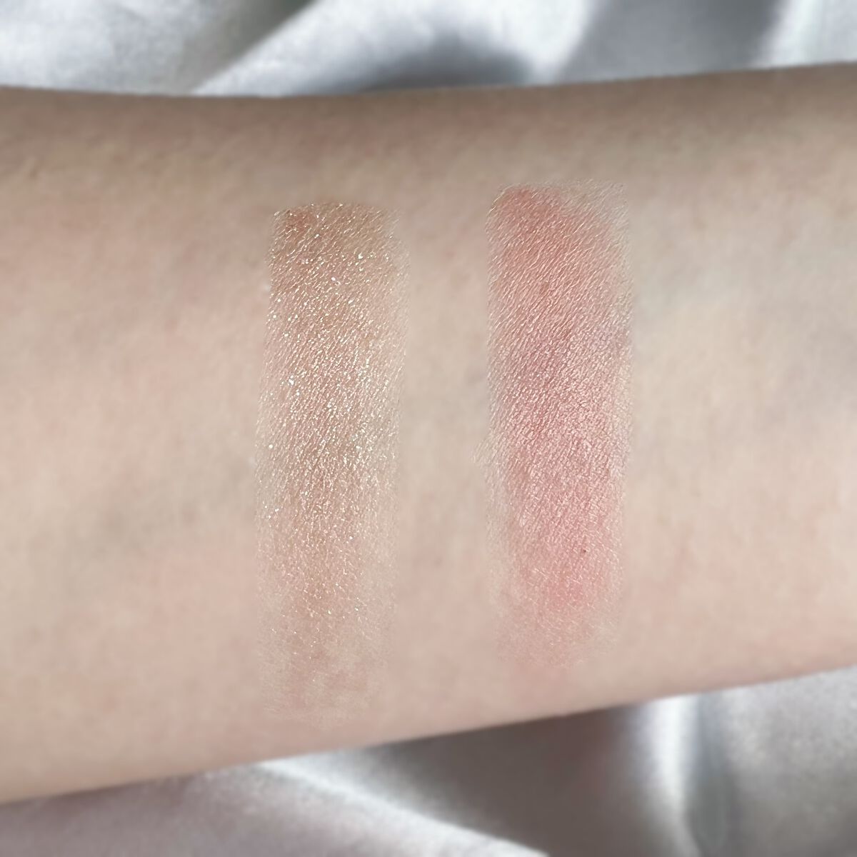 04 ザ・ナラティブ はクールトーンの配色で グレーカラーとかくすんだカラーが多くて 組み合わせは昨日紹介した03より難しいかもしれません。 ヒンスいつも通りの滑らかで発色が良い ただしこのパレットのポイントカラーの ブラックカラーは濃い色なので、キレイに伸ばせないです😢 一番左上はクリームタイプのアイシャドウです 恐らくアイシャドウベースだと思います。 今回の新色03と04 個人的には03の方が気に入りです🌷❤️