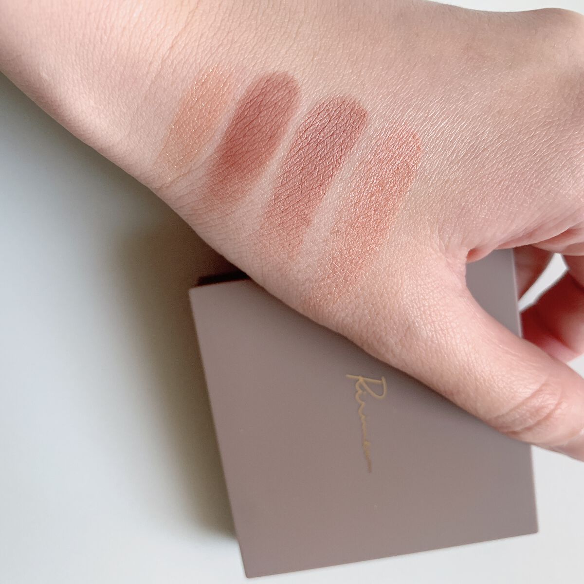 左上のカラーが薄めで可愛いのだけれどこれベースだと薄づきで物足りなさ感じません? 艶感やラメ感はきれいなのにもったいない〜!と言う方 濃いめの色で全部まかなっちゃいましょう! このパレットはメインラメがなくて全体的に細かいラメが入ったパレットなので濃い色をベースに薄めに塗って使用して しっかり発色ありつつも肌なじみのいいピンクなので綺麗に仕上がります◎
