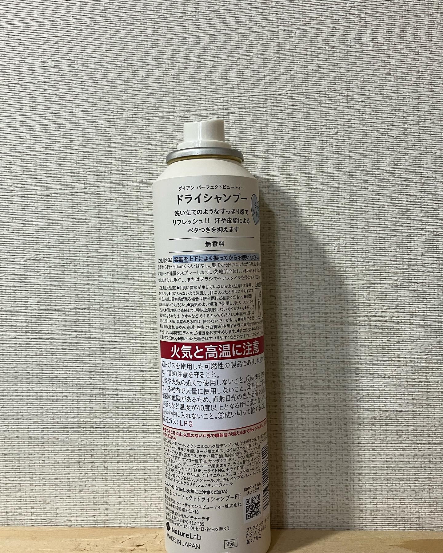 ダイアン パーフェクトビューティードライシャンプークールフレッシュシトラス&ハーブの香り 95g ¥1,320ホームセンターで税込980円で購入できました✨洗い立てのようなすっきり感と爽やかな香りで、瞬間クールリフレッシュ!汗や皮脂によるベタ...