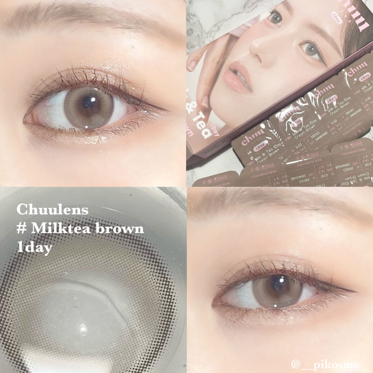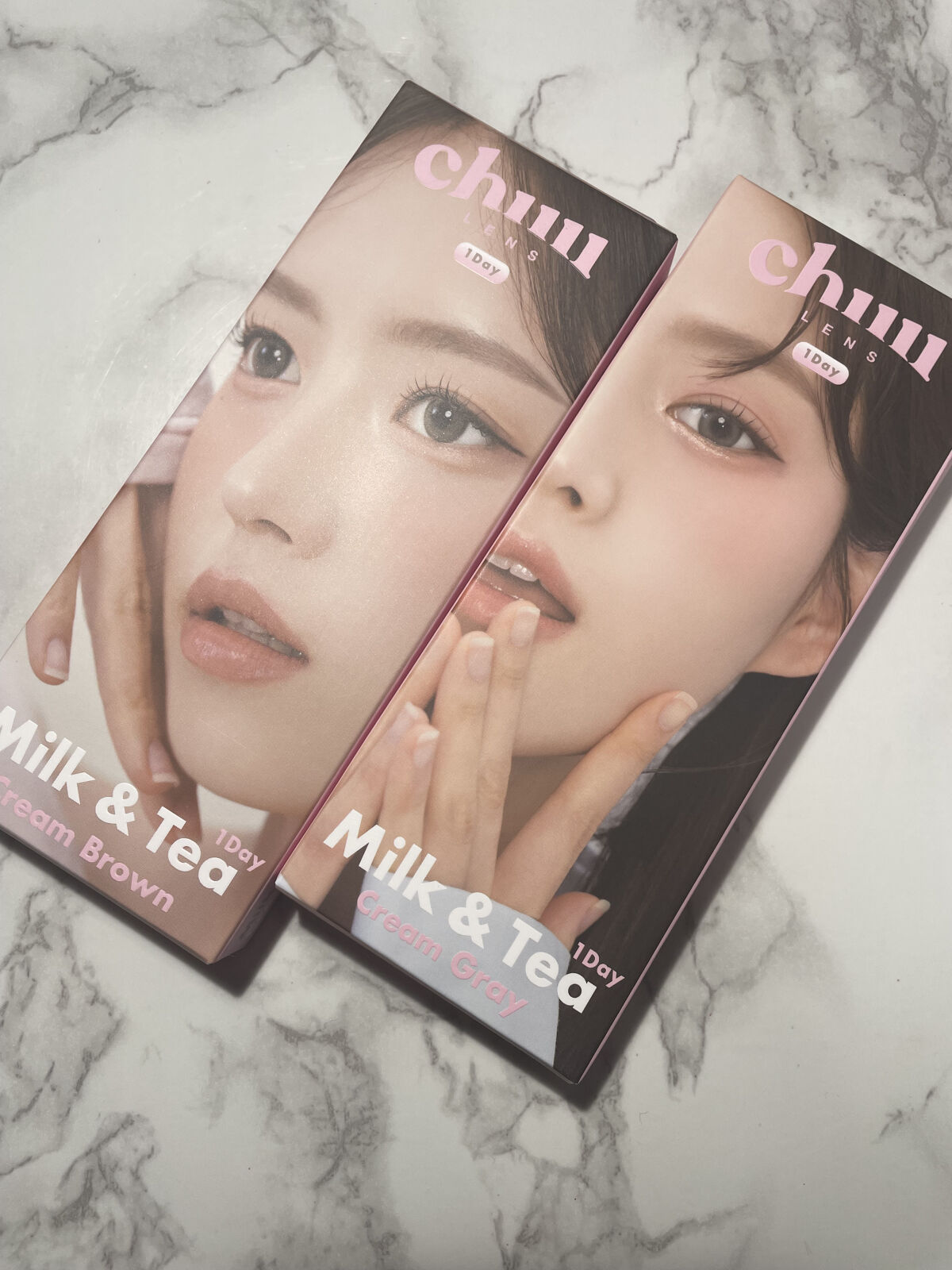 奥目おすすめ!ChuuLensミルクティーグレーカラコン♡ChuuLensMilk&TeaRoyal13.8CreamGray1DAY10枚入りDIA14.5mm着色直径13.8mmBC8.7mm含水率38%ChuuLensの大人気カラーCr...