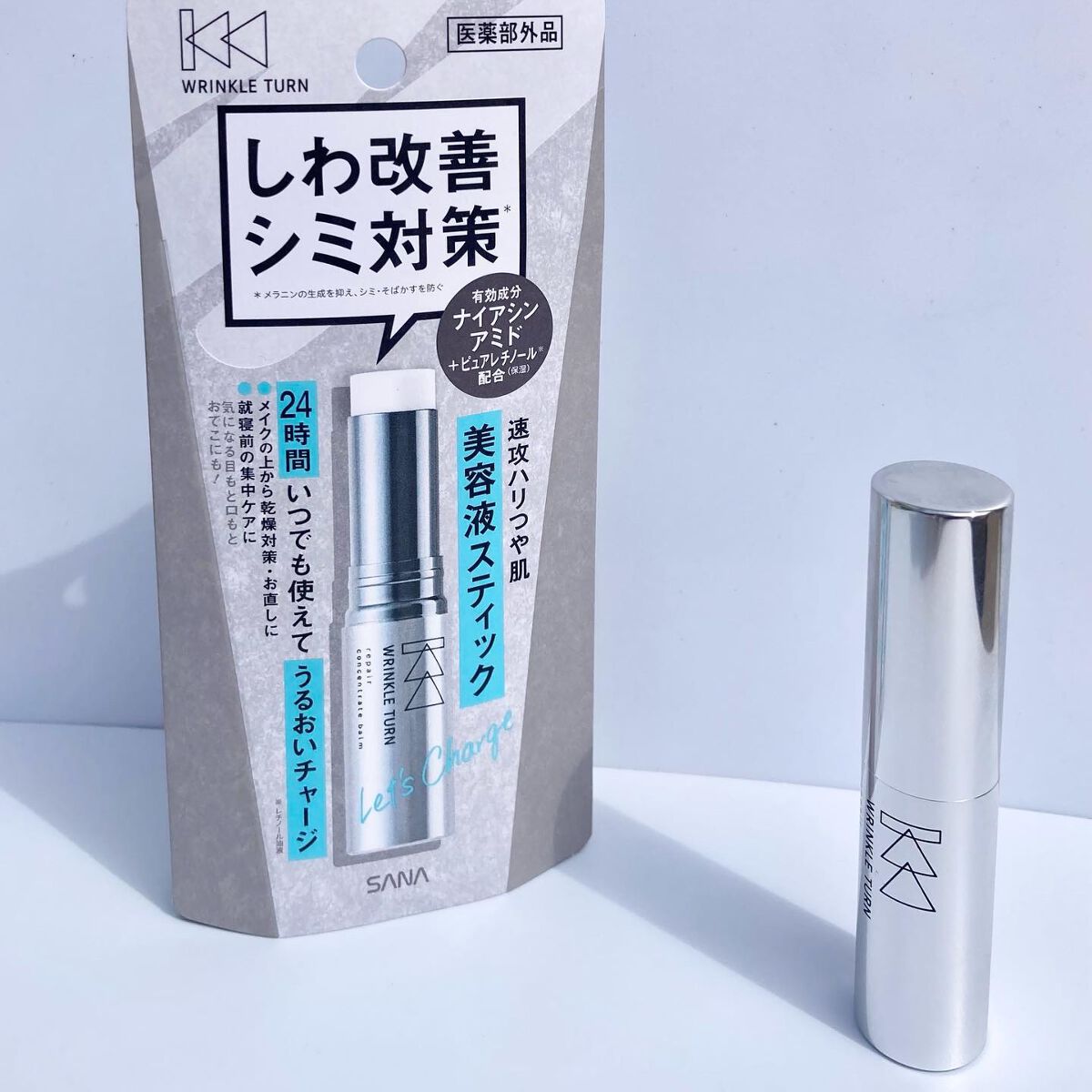 - 【医薬部外品】 ●有効成分ナイアシンアミドで大人の肌にアプローチ!しわ改善とシミ予防*1のW効果 年齢を重ねたり紫外線ダメージを受けたりすることで、真皮のコラーゲンが減少し、真皮の構造が崩れて「しわ」に...。ナイアシンアミドが、そんな肌の奥の“真皮”までしっかり届いて、しわを改善します。さらにシミの素であるメラニンの生成を抑制し、シミ・そばかすを防ぎます。 ●ピュアレチノール*2配合で、ハリのある肌へ しなやかなハリ肌に導くピュアレチノール*2を配合。さらにハリ・ツヤサポート成分*3も配合し、弾力感のハリ肌へ仕上げます。 ●ケアだけじゃない!速攻しわぼかし効果*4 ストレッチ性のあるパウダーがお肌の凹凸にフィット。塗ってすぐ、お肌がつるんとなめらかに仕上がります。 *1 メラニンの生成を抑え、シミ・そばかすを防ぐ *2 保湿成分 *3 加水分解コラーゲン末、コメ胚芽油(保湿) *4 メイク効果による