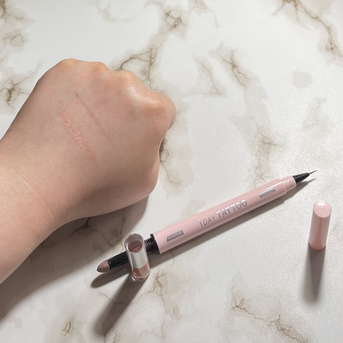 - <コンセプト> ぱっと花ひらくように咲かせよう、わたしの瞳 ~大きな瞳の小さな秘密~ <商品特徴>マルチに使えるパウダー&リキッド ●パウダー ①高輝度パールを贅沢に配合 01、02⇒8種のツヤパールin 03、04⇒13種のガラスパール&ツヤパールin ②独自のシルキーフィット処方 ・軽くのび広がり、ムラなく塗布しやすい ・密着力が高く、粉飛びが少ない ・ウォータープルーフ処方で汗、皮脂、水に強い ③7種の美容保湿成分を配合 ヒアルロン酸Na、水溶性コラーゲン、ローヤルゼリーエキス、ラベンダー花エキス、カミツレ花エキス、リンゴ果実エキス、トレハロース ●リキッド ①影をこっそり仕込む極細ショート筆 ・筆先が短く、しなりにくいから、ブレずに描きやすい ②マルチな使い方ができる ・涙袋の影、ふたえライン、まつ毛のキワ、切開ライン、ノーズシャドウ、人中短縮メイクなど使い方は無限大! ③ウォータープルーフ処方で汗、皮脂、水に強い ④あなた色の影になる3/5発色 ・肌と一体化するように、ぼかした自然な発色でこっそりと影を仕込むことができる。
