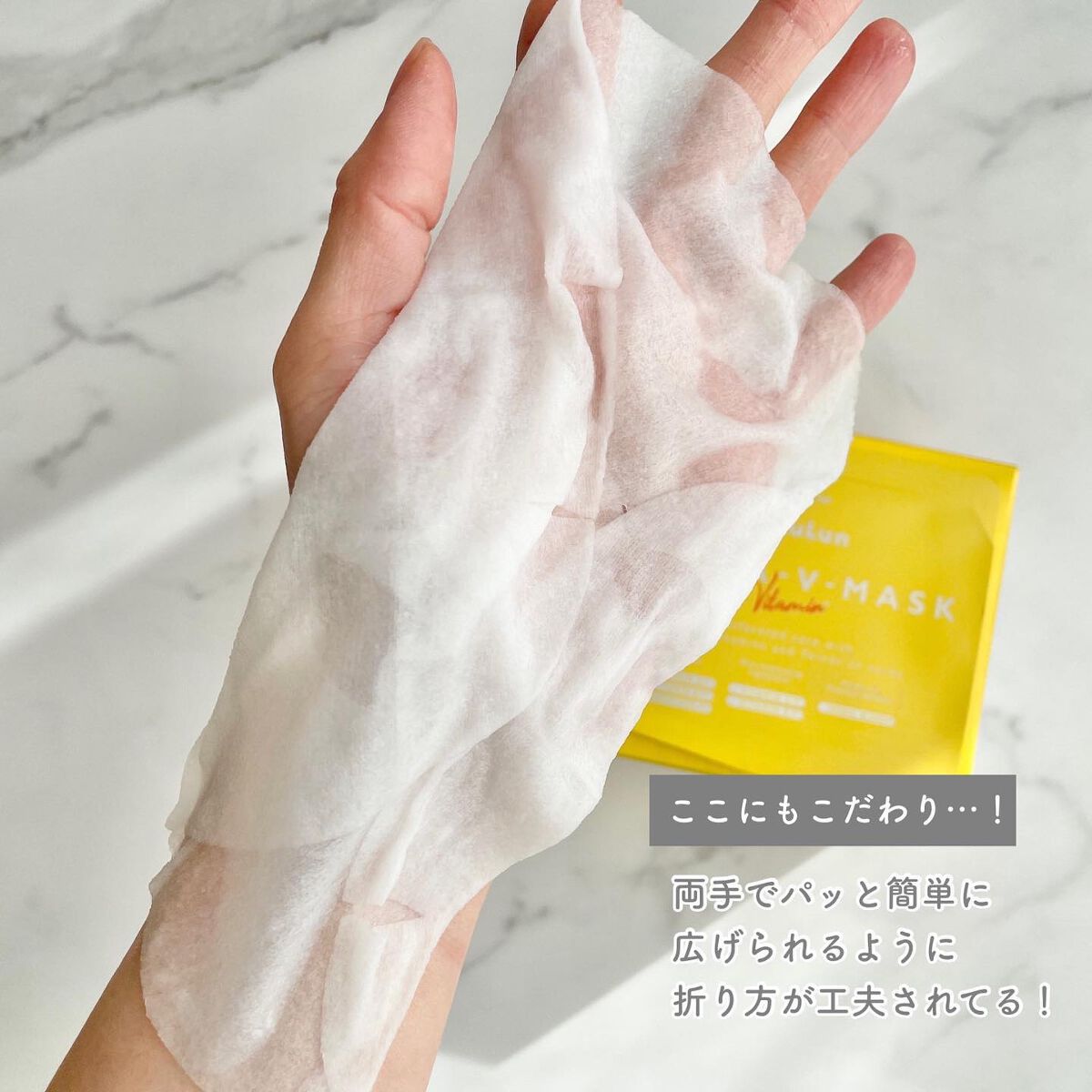 年齢や肌質にとらわれないで、誰もが抱える悩みに対してトータルケアできるなら使ってみたいよね❣️ それができるのが【ルルルンハイドラ V マスク】✨ 「うるおい+ビタミン」に特化した商品なんです🥰 シートがすごくてね、厚みがあって、ぐいっと上に引き上げながらはれるから、リフトアップにも繋がりそう❤ LuLuLunはさ、毎日の化粧水の代わりに使える化粧水フェイスマスクやから、それも人気の1つよね🥰