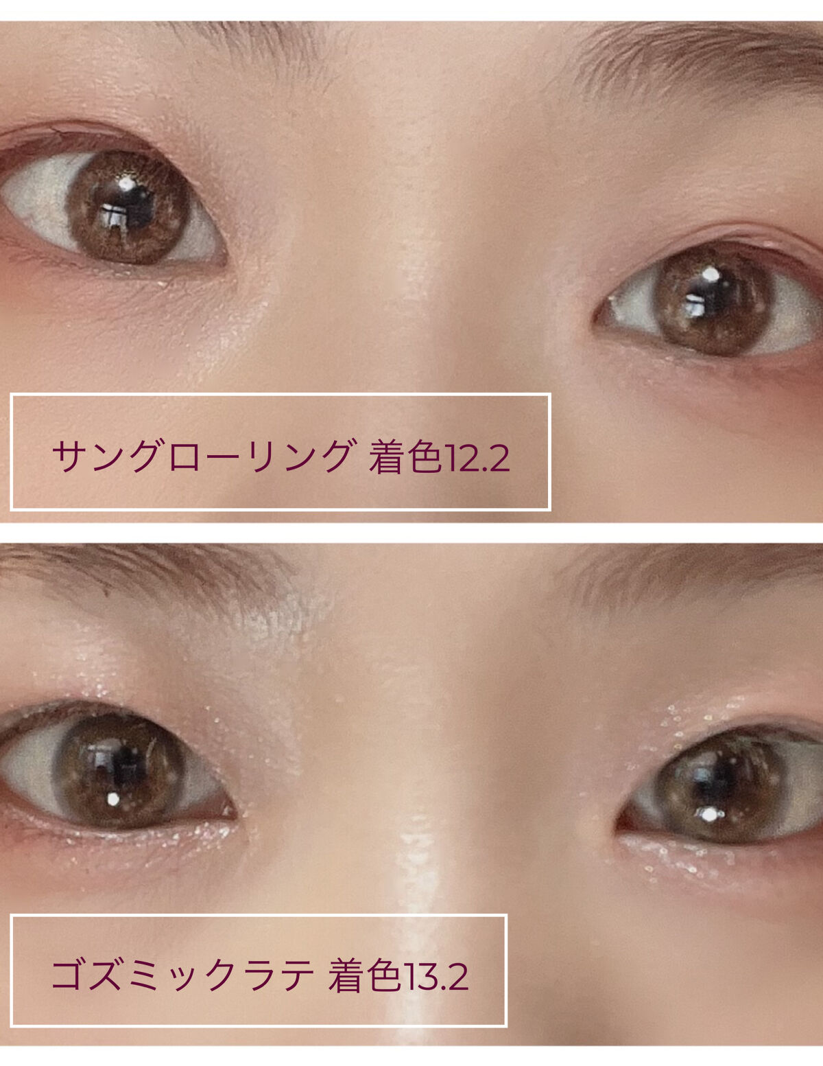 全種類レビューです♪ 箱までかわいいとか……😍 私的オススメ色順 👑①シュガードーナツ ②ブラウンフォンデュ ③ゼリーグレー ④キャラメルスフレ 全色使いやすいですが、順番決めるならシュガードーナツが一位❤️ めちゃくちゃ好み…色にデザイン何もかもが👌 ゼリーグレーとブラウンフォンデュはめちゃくちゃ迷いましたが、普段はあまりグレー使わないのでブラウンフォンデュを二位に😊 メイクの仕方はどれも同じです✨ それでもめちゃくちゃ合わない…となるカラコンはなかったので合わせやすいかなと感じました✨ 仕事用にブラウンフォンデュとキャラメルスフレを、プライベート用にシュガードーナツとゼリーグレーを使ってます✨