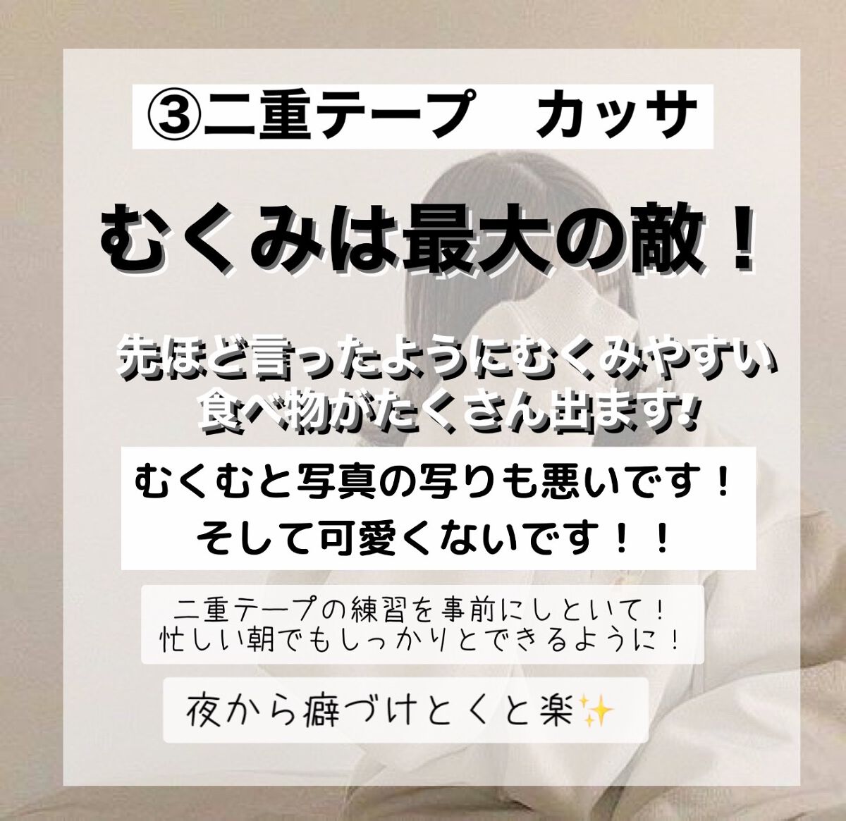 修学旅行は食事&ストレスでものすごく肌荒れしやすい状況です! スキンケアは念入りにしましょう! 先ほど言ったようにむくむので朝二重が消えていることがありますw 二重テープをこっそり持ってって綺麗な二重を作りましょう! 事前に夜から仕込んどくと朝起きて剥がせば綺麗にできています! カッサでむくみ撃退するのも良き! やっぱりスクールメイクはしたい! 日焼け止めはトーンアップするもの、パウダーはラメなしでテカリを抑えるもの! 簡単に綺麗な肌が作れてモテまくり💓 髪の毛を傷ませない&前髪命な女子! 待ち時間にヘアオイルを馴染ませてタオルどらい! 朝は前髪カーラーで時短! 簡単に韓国っぽシースルー前髪完成✨ ほんとにこの二つ持っていきな!